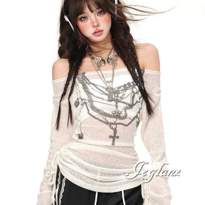 2色 カットソー クロス シャツ ギャザー オフショル シアー感 (O9868)ρ