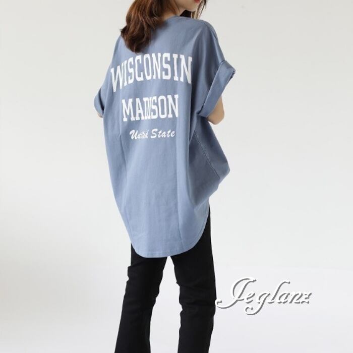 6色 ロンT ビック シャツ バックロゴ ドロップショルダー (MA340)ρ