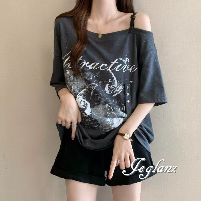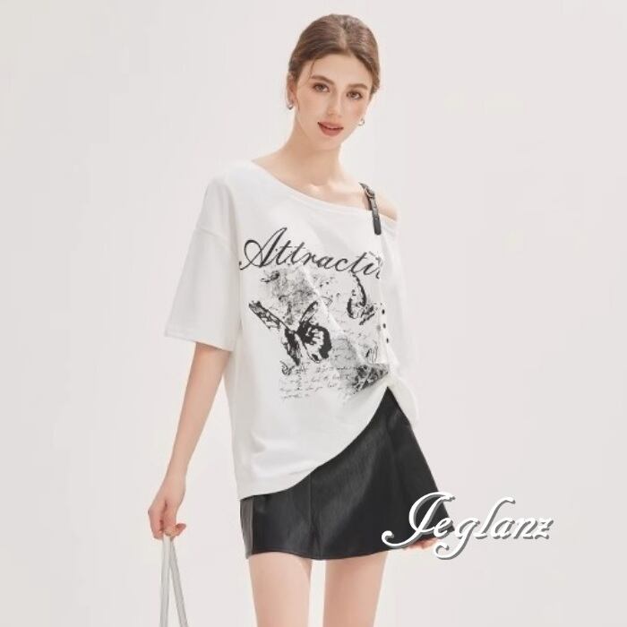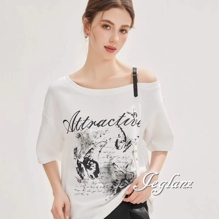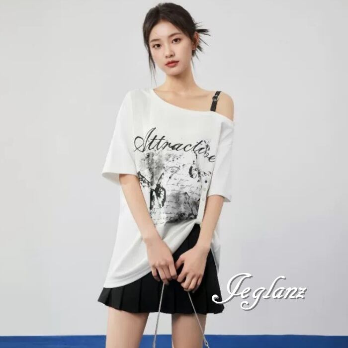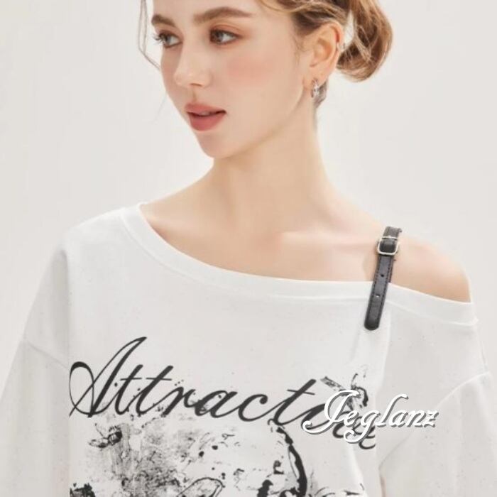 2色 カットソー シャツ スタッズ ベルト ワンショル 肌見せ(MA350)ρ