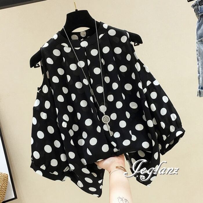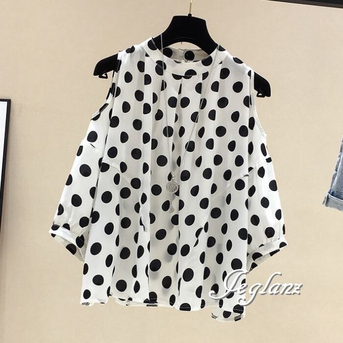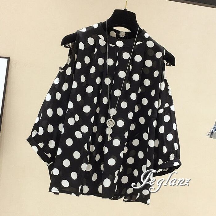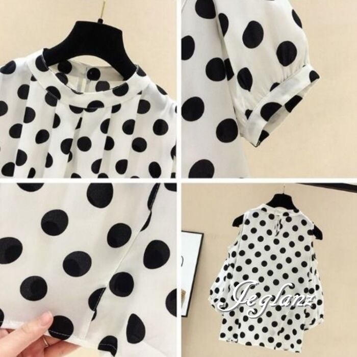 レトロなドット柄を大人っぽくまとめたブラウスシャツ