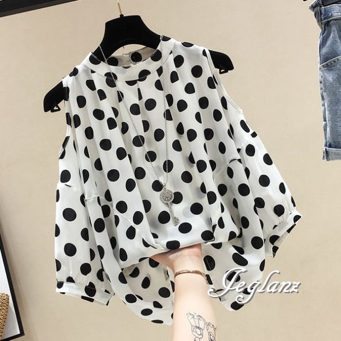 水玉 ブラウス ポルカドット ノースリーブ きれいめ カジュアル派(MA351)ρ