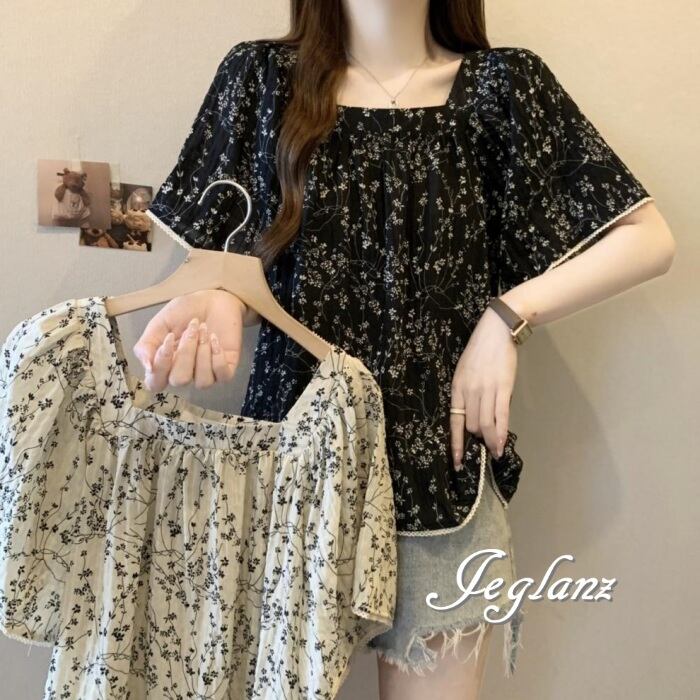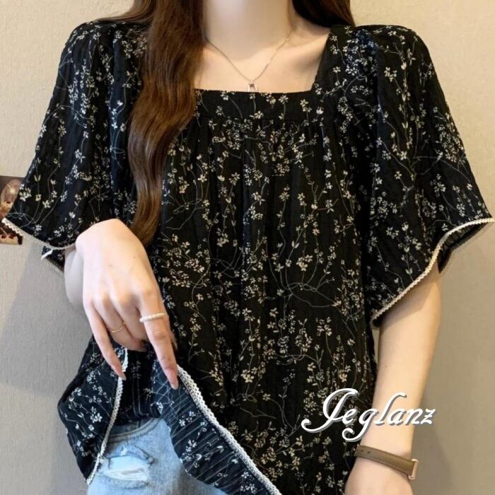 2色 ボタニカル柄 カットソー トリミング ルーズフィット(MA357)ρ