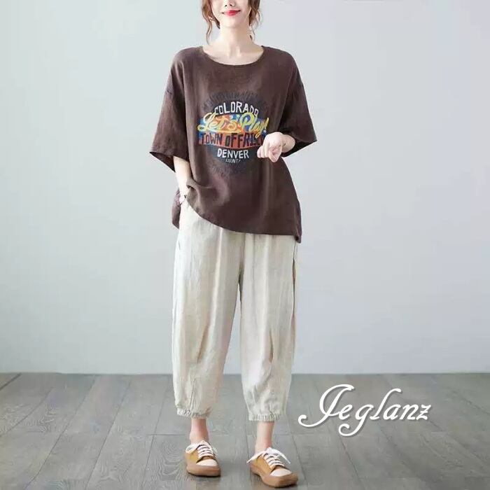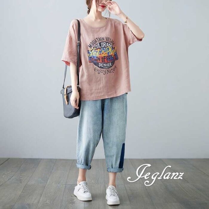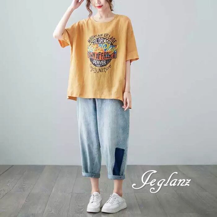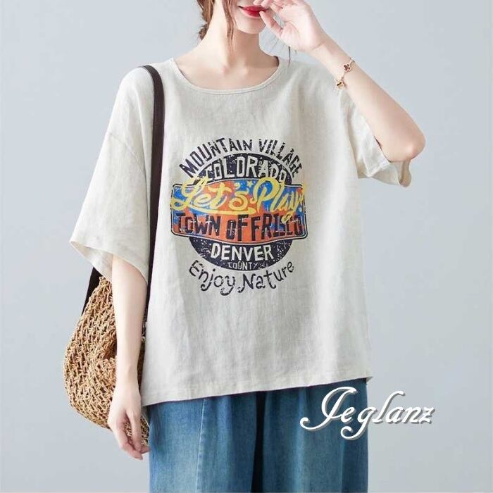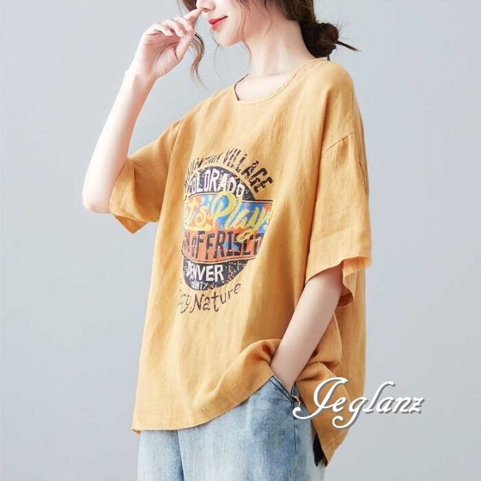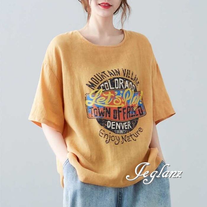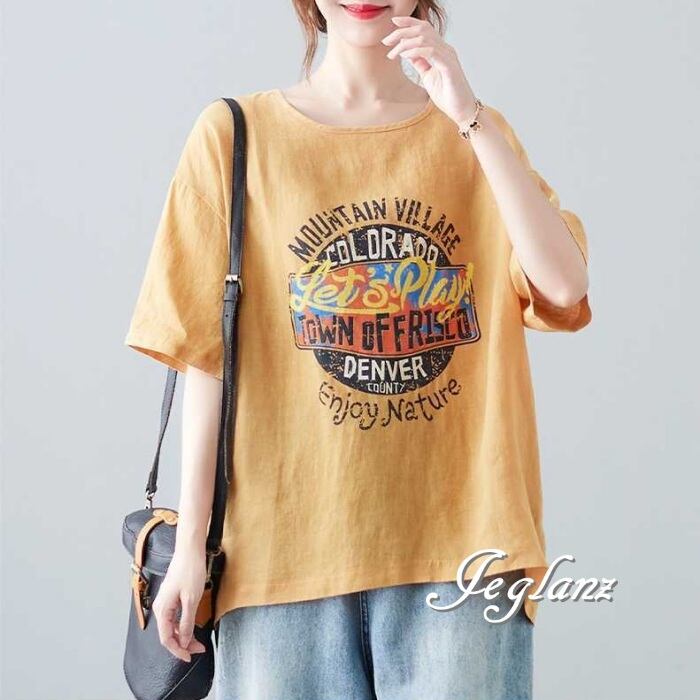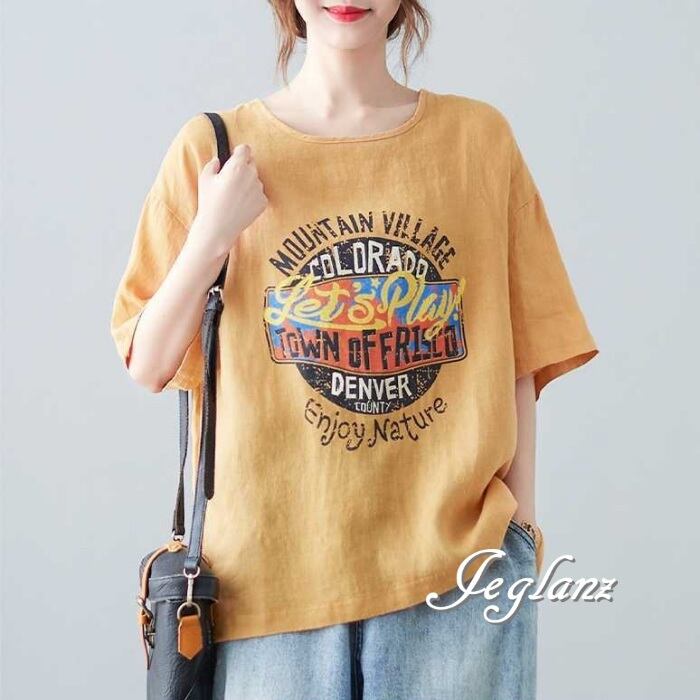 4色 Tシャツ トップス ロゴ プリント ドロップショルダー(MA366)ρ