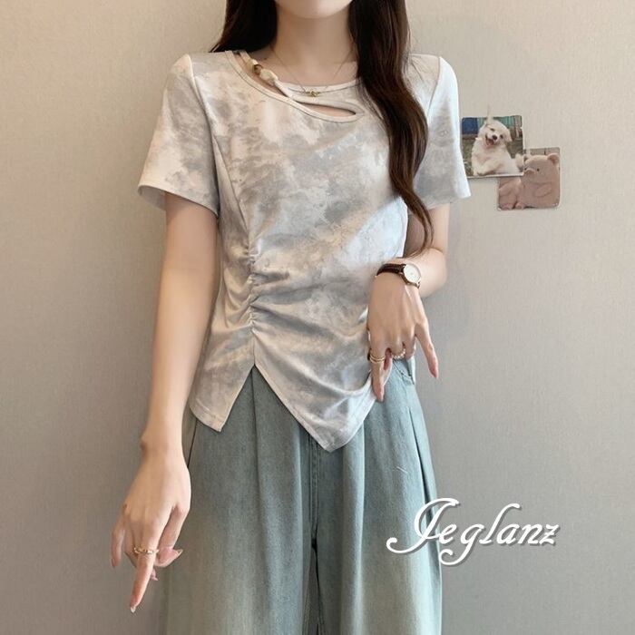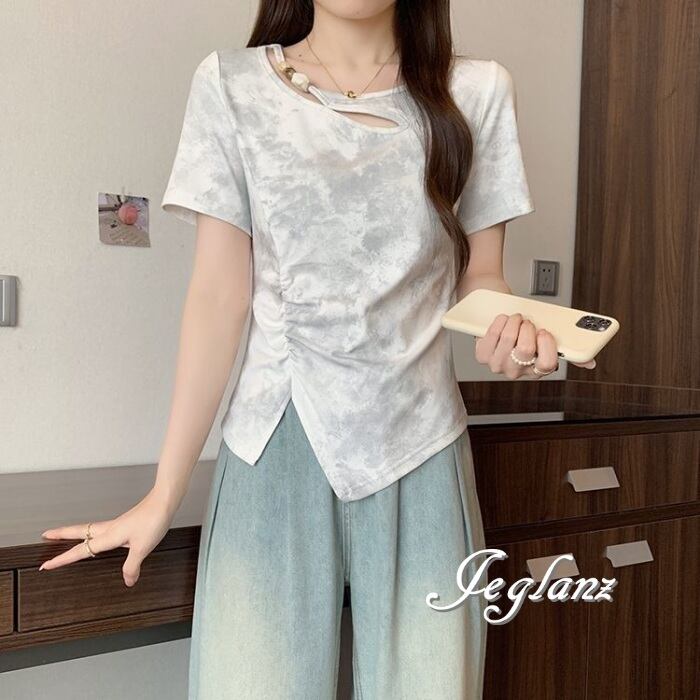 4色 カットソー デザイン トップス タイダイ柄 カジュアル派(MA369)ρ