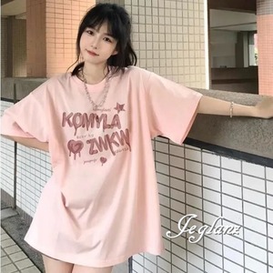 4色 ロンT ビックシャツ ロゴ ドロップショルダー カジュアル派(MA370)ρ