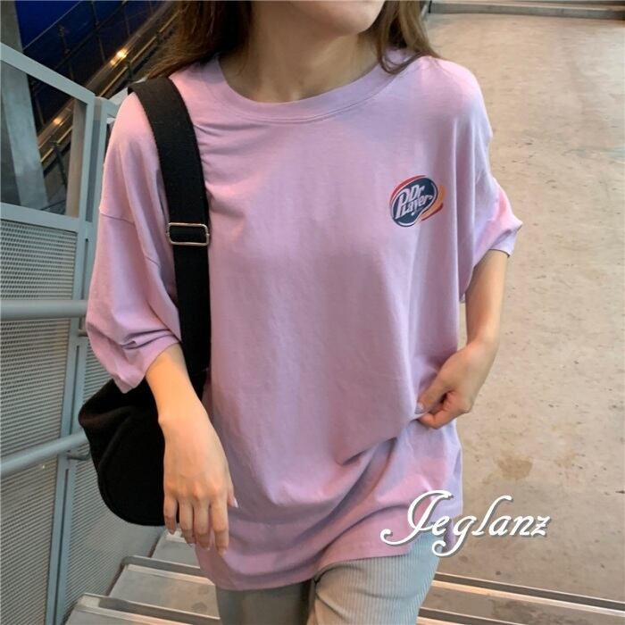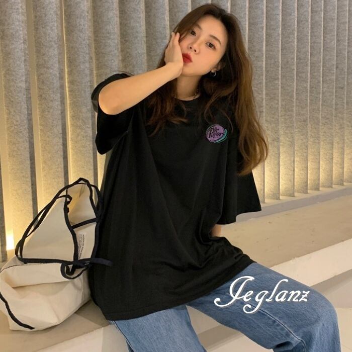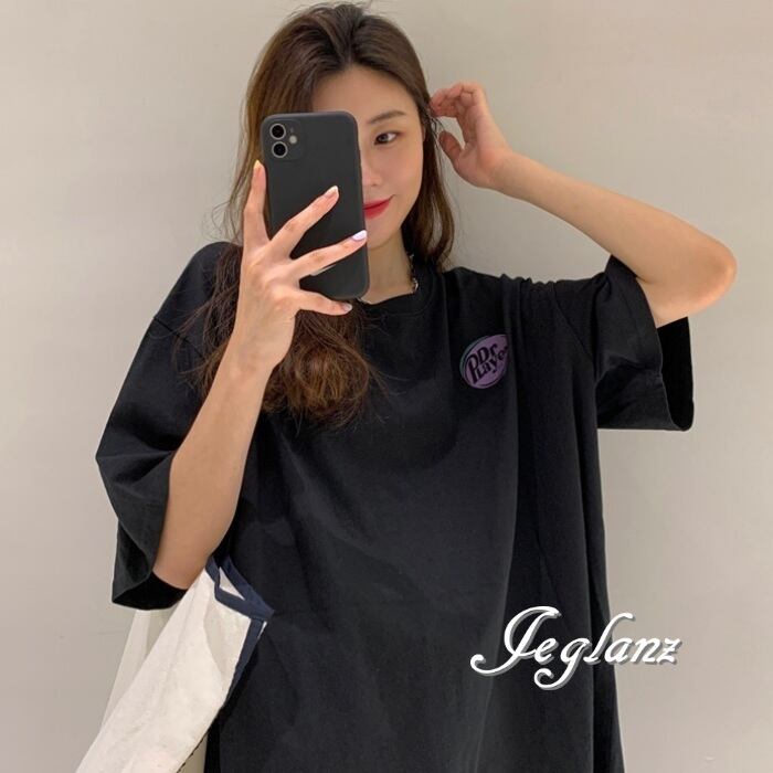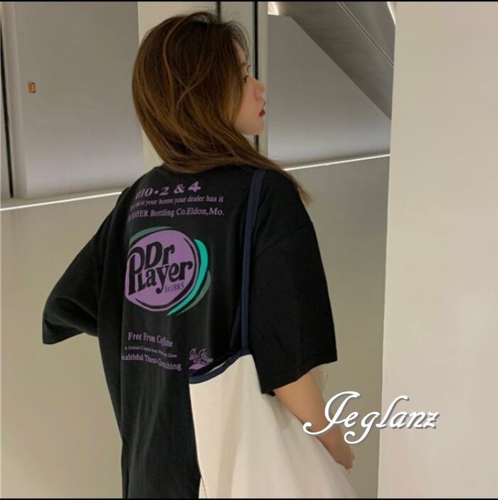 4色 Tシャツ トップス バックロゴ ラウンド ドロップショルダー(MA378)ρ