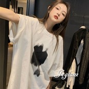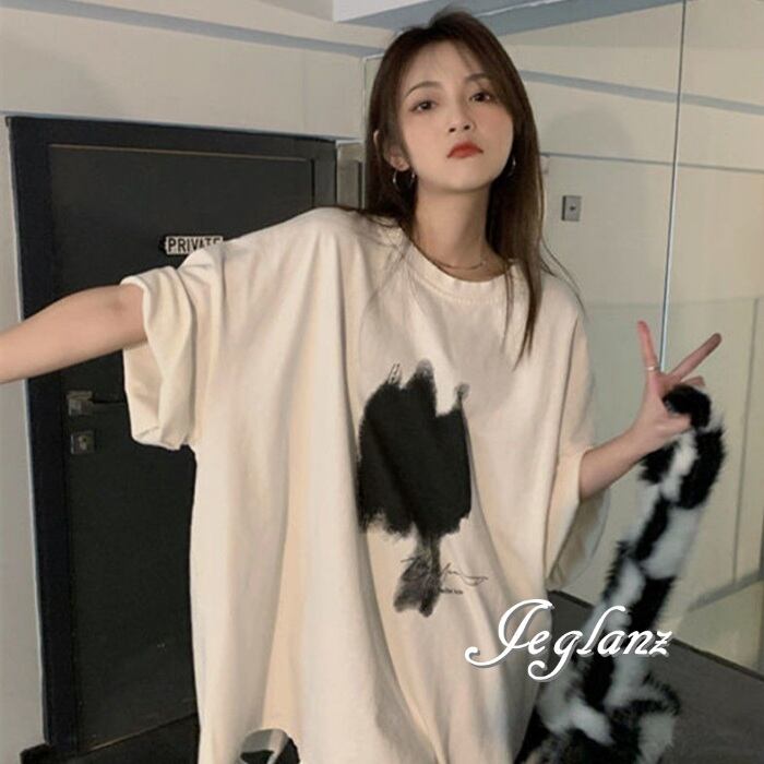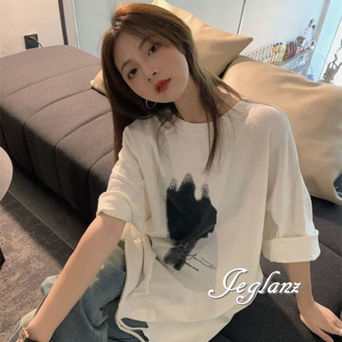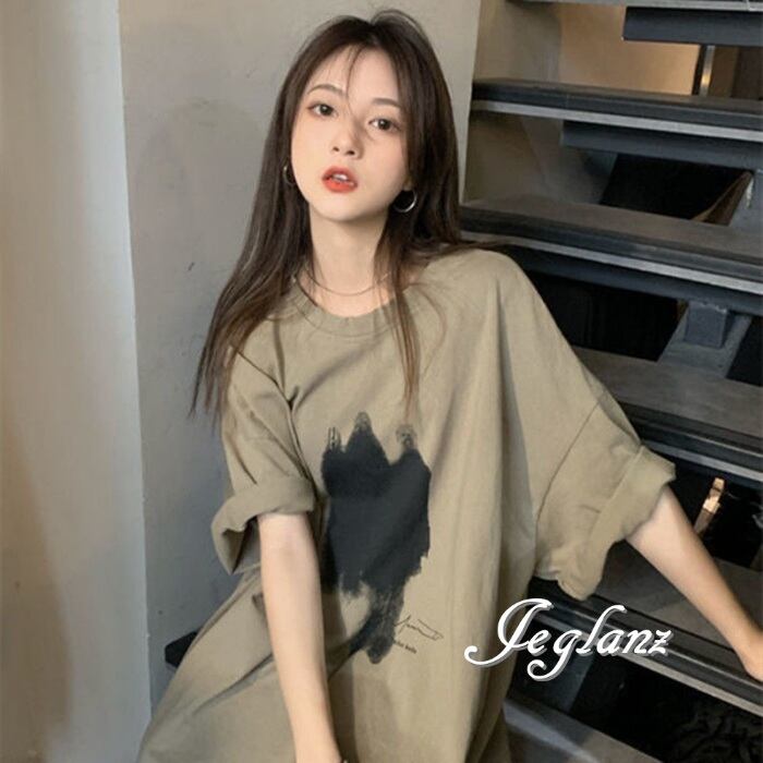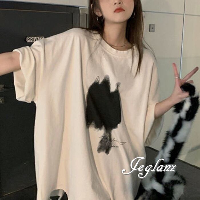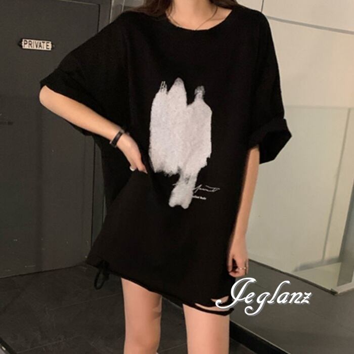 3色 Tシャツ トップス プリント ダメージ ドロップショルダー ♪(MA386)ρ