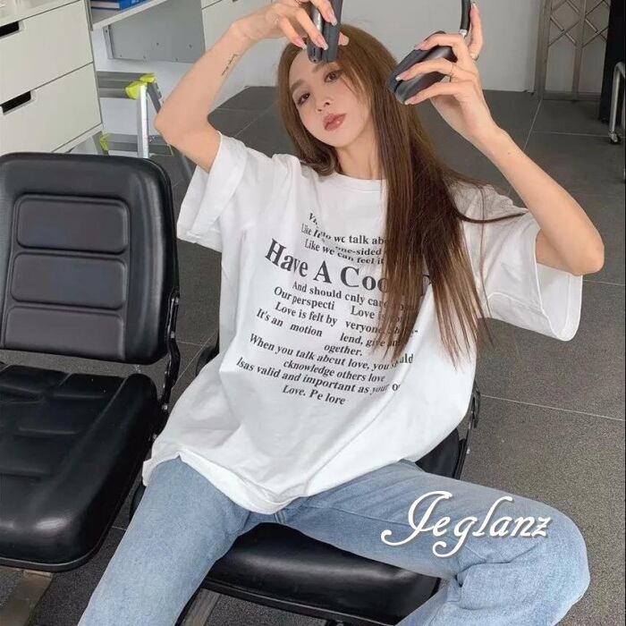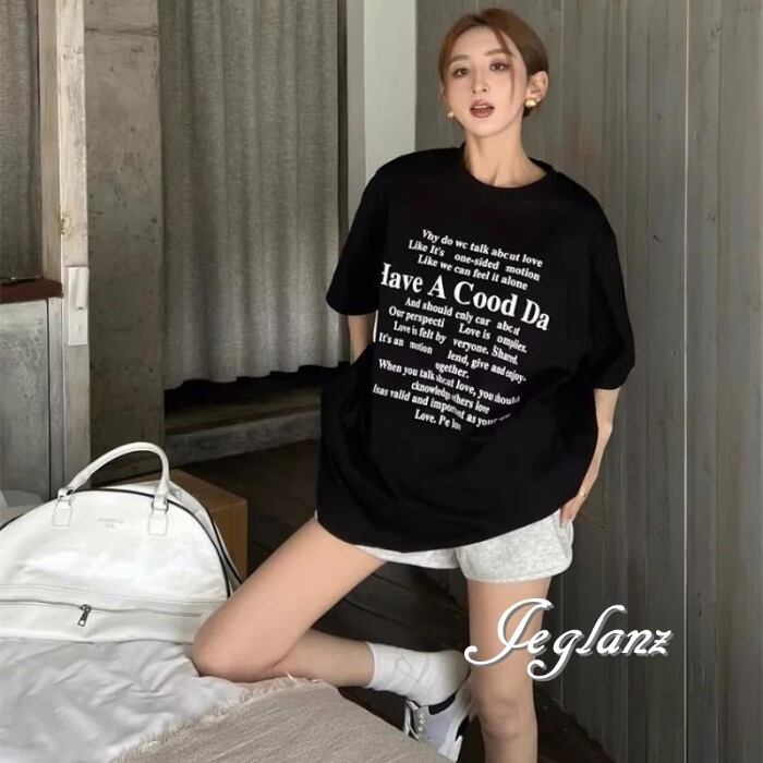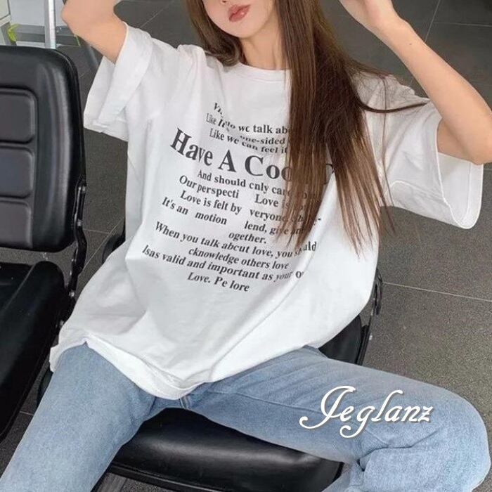 2色 Tシャツ トップス ビックシャツ ロゴ プリント カジュアル派(MA389)ρ