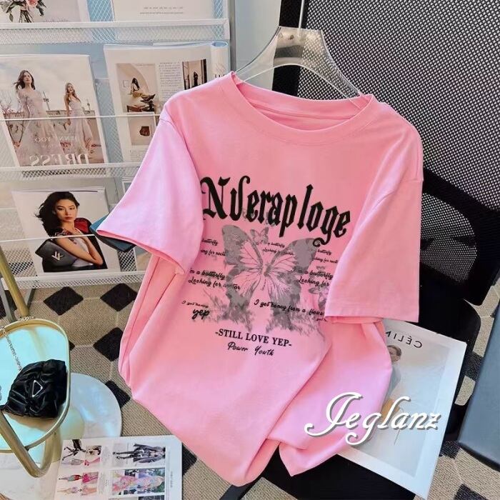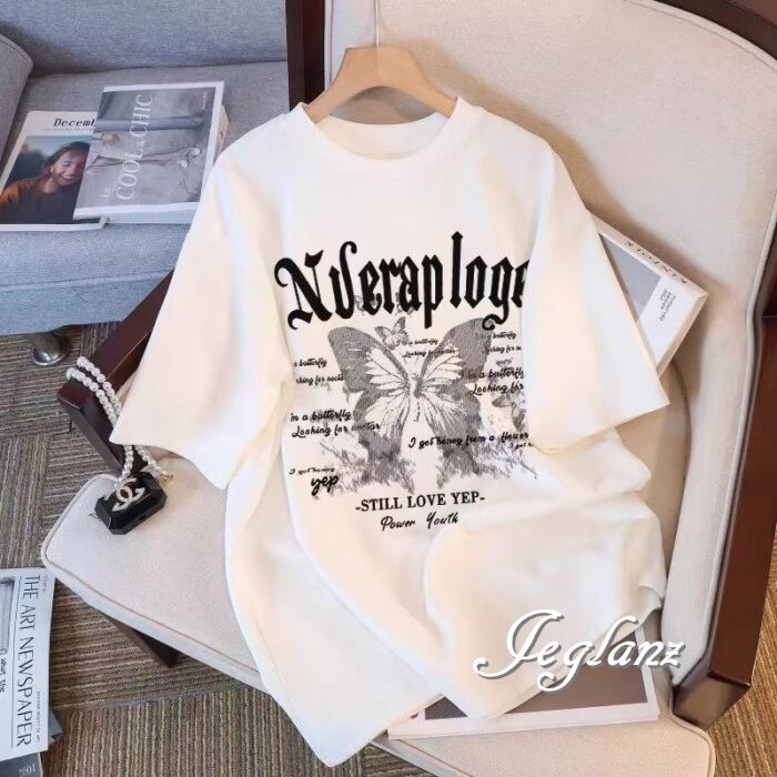 4色 Tシャツ トップス ロゴ 蝶 ドロップショルダー 2パターン ♪ (MA417)ρ