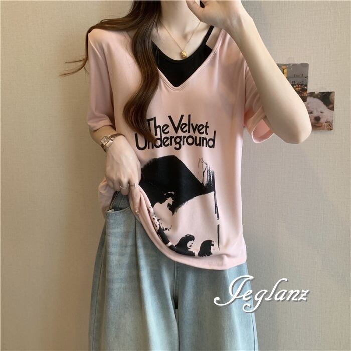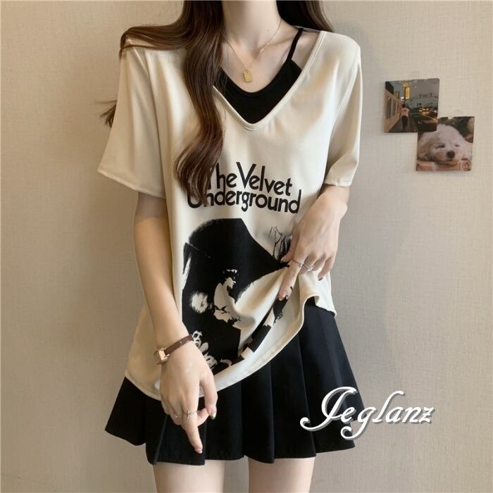 4色 Tシャツ トップス ロゴ プリント レイヤード 大きいサイズ (MA419)ρ