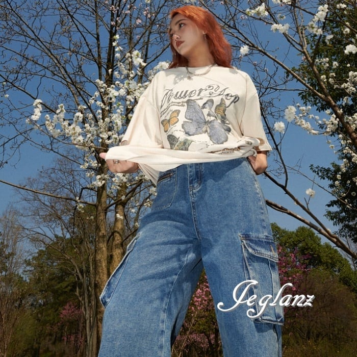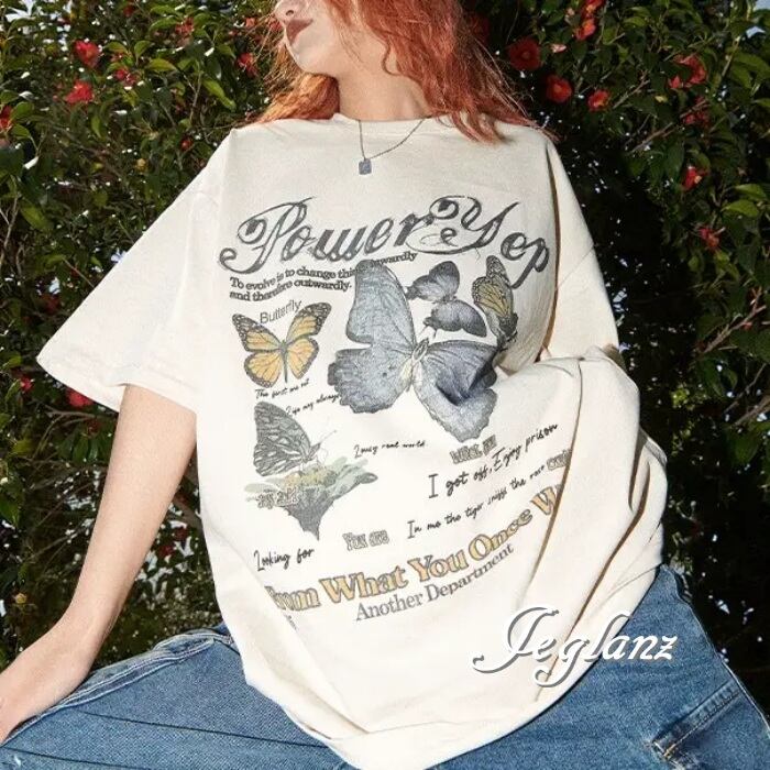 Tシャツ トップス ロゴ 蝶 ドロップショルダー オーバーサイズ (MA420)ρ