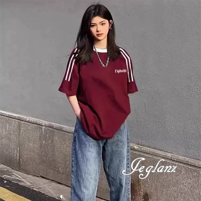 3色 ライン Tシャツ トップス バックロゴ ドロップショルダー ♪(MA426)ρ