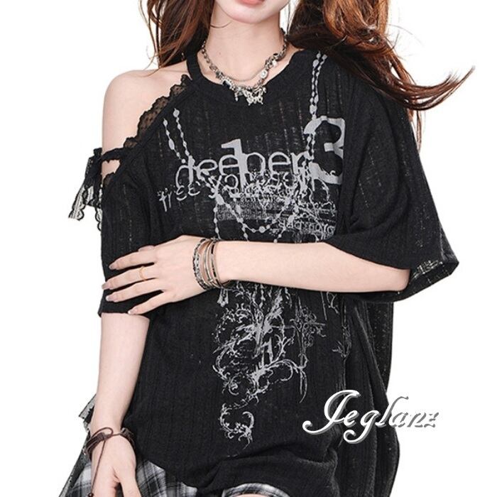 2色 Tシャツ カットソー ワンショル ドロップショルダー ♪(MA436)ρ