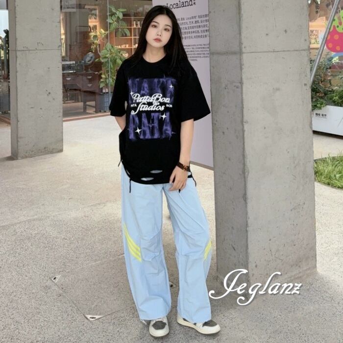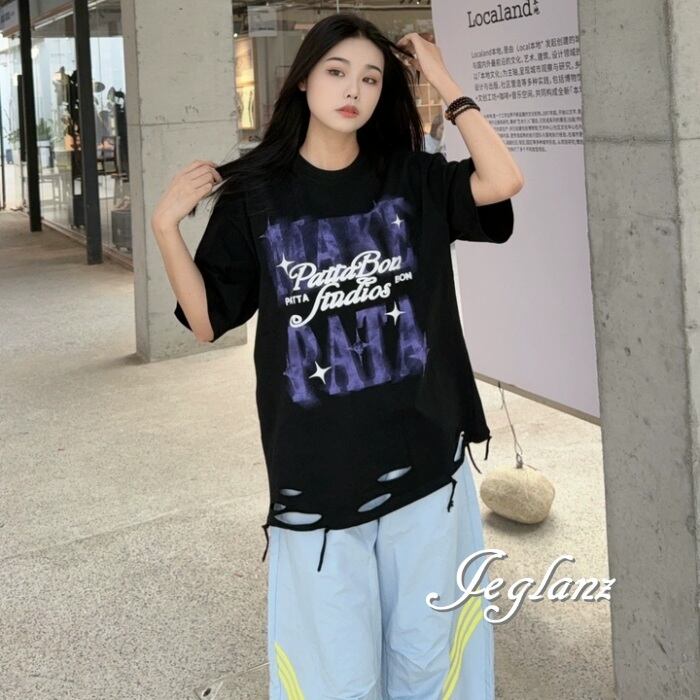 2色 ダメージ Tシャツ トップス バックロゴ 破れ ユニセックス (MA446)ρ