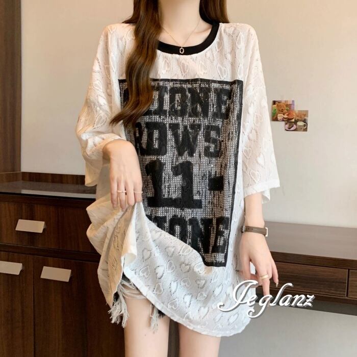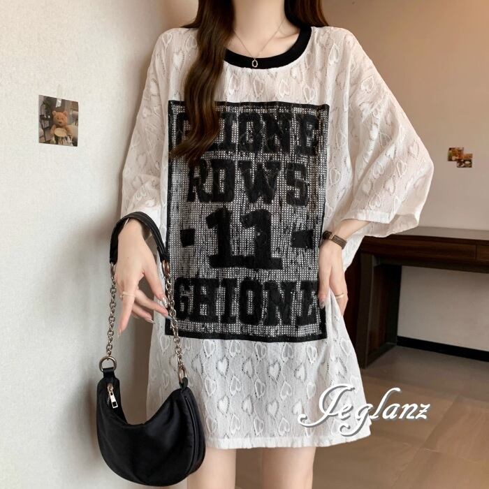 2色 ロンT トップス ロゴ プリント ハート柄 オーバーサイズ ♪(MA456)ρ