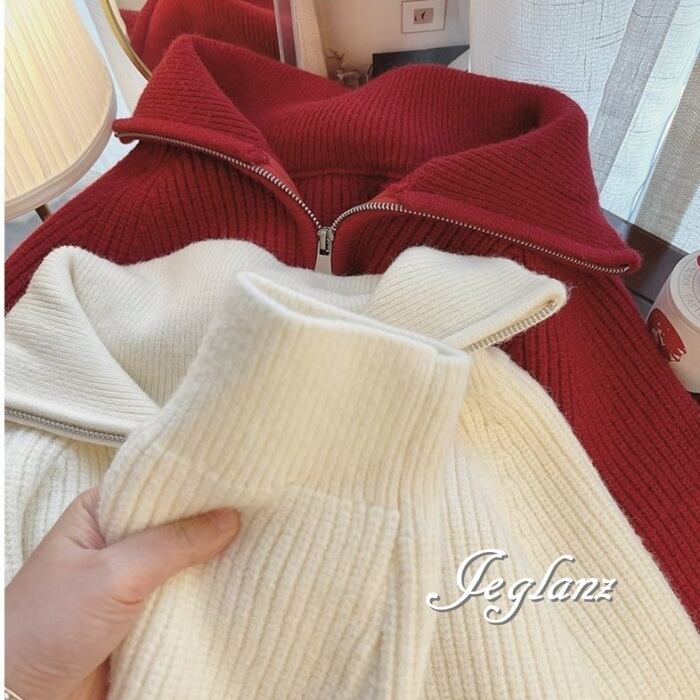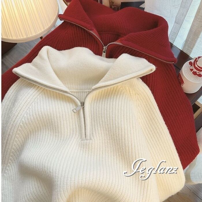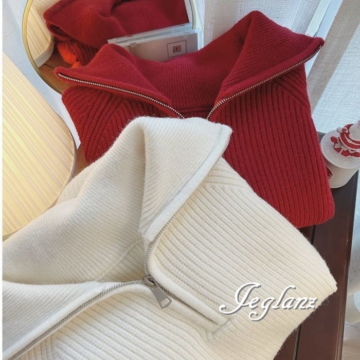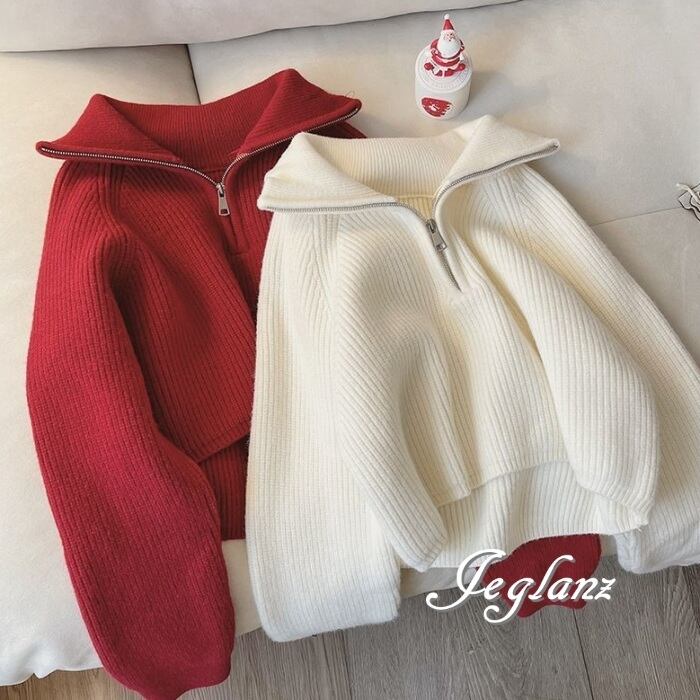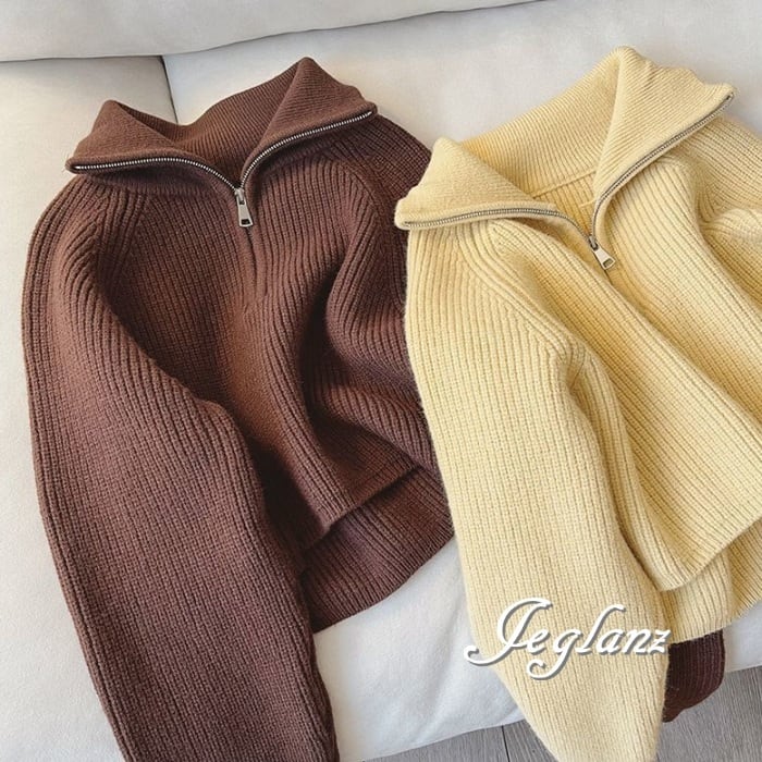 5色 短め丈 リブ ニット セーター ハーフジップ プルオーバー(MA648)σ,ς*