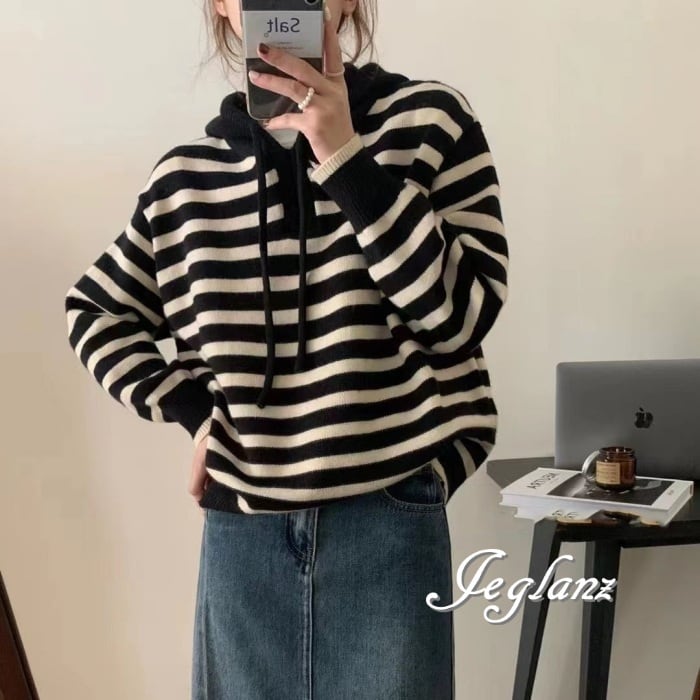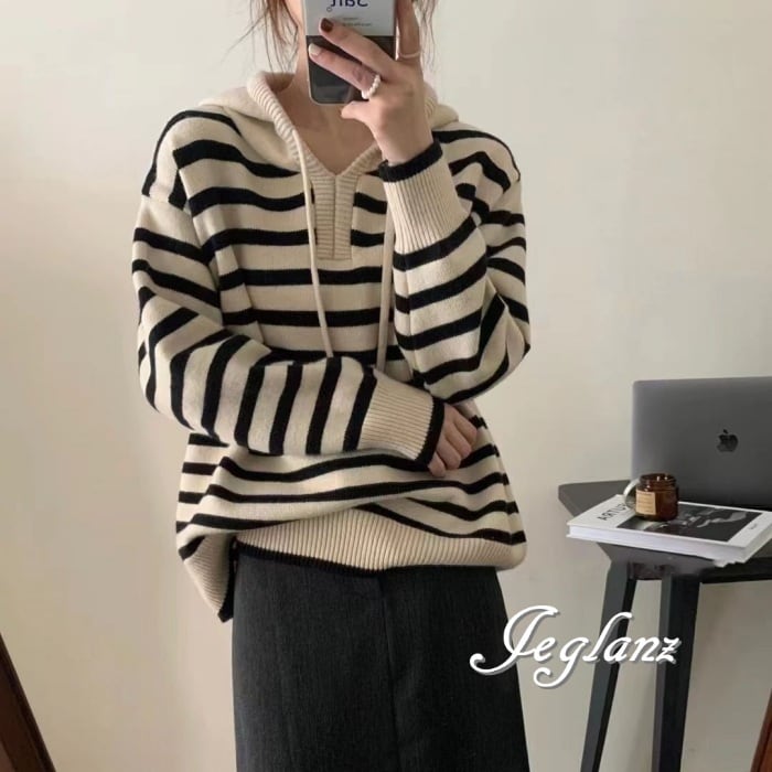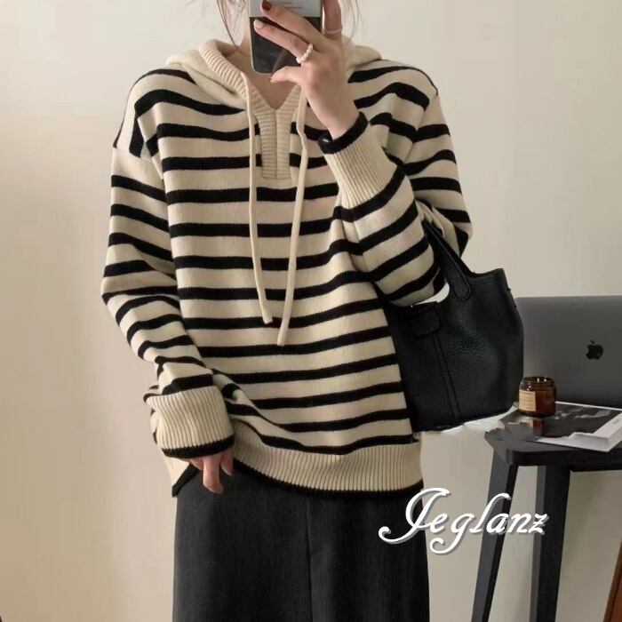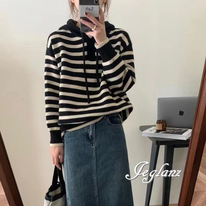2色 ニット パーカー マルチボーダー ドロップショルダー (MA650)σ,ς*