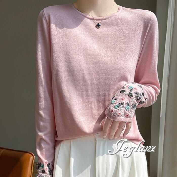 4色 カットソー シャツ 刺繍 レース きれいめ カジュアル派(MA667)σ,ς*