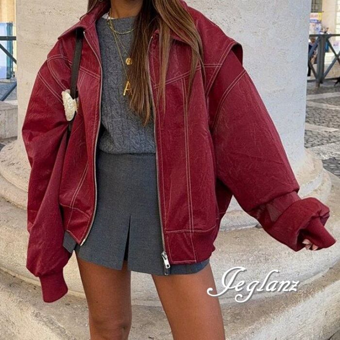 ワイン×テーラード、レッド×ジップ