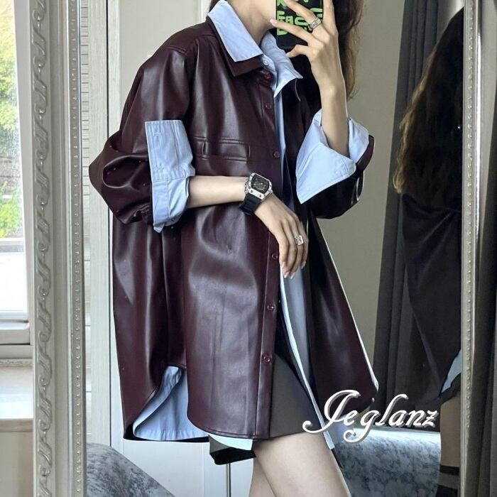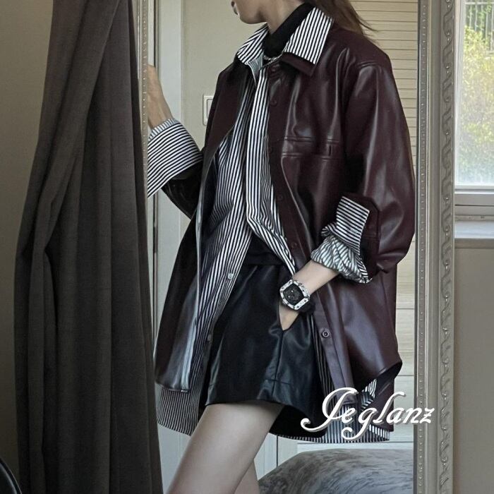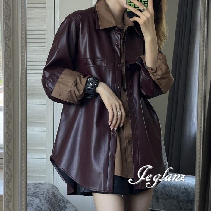 レザー シャツ ジャケット ルーズ フェイク エッジィ (MA707)σ,ς*