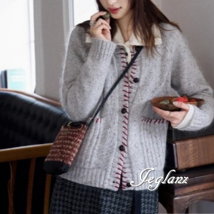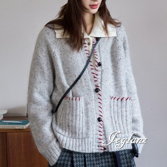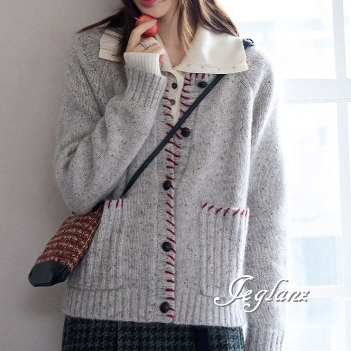 2色 ニット カーディガン 編み込み 羽織り ポケット ボタン (MA720)σ,ς*