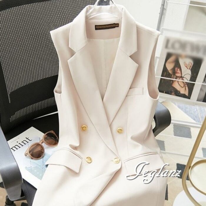 ロングジレ ロングベスト ダブルブレスト エッジィ 3色 ♪(MA756)τ