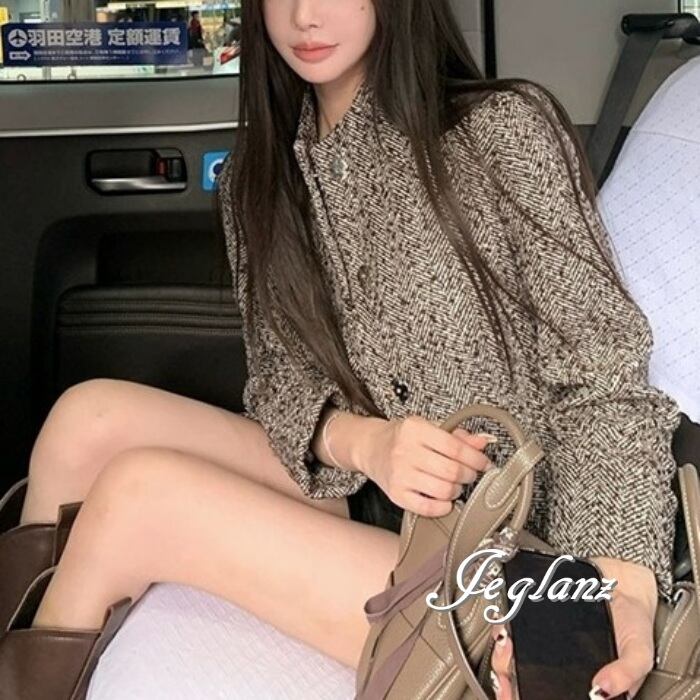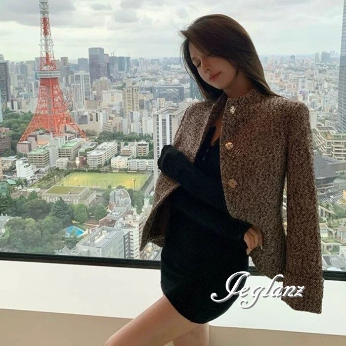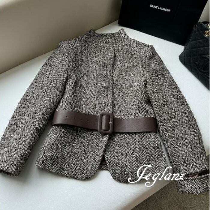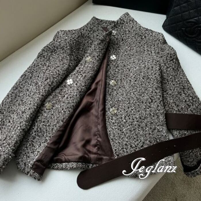 ニット ジャケット スタンドカラー ヘレンボーン ベルト付き(MA757)τ