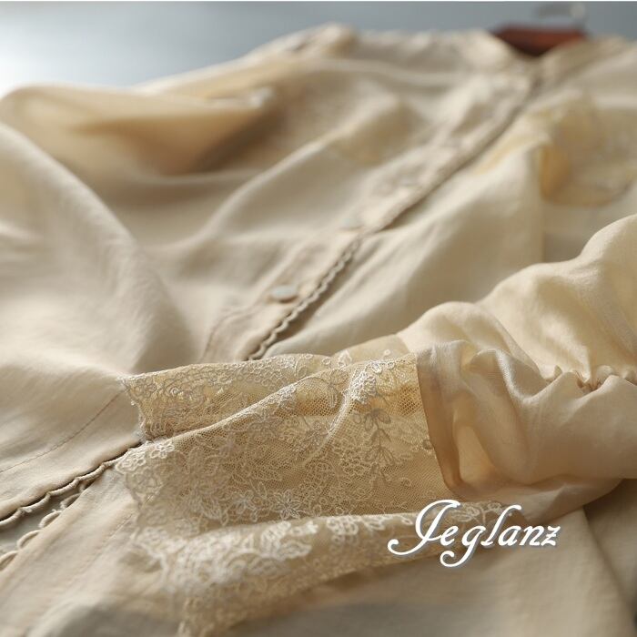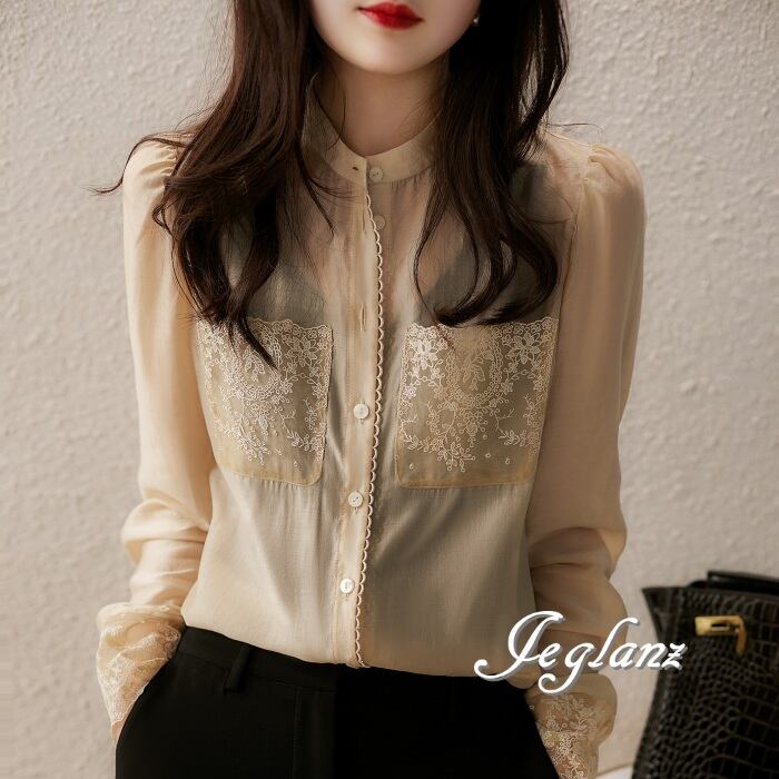 2色 シアー ブラウス シャツ 刺繍 レース きれいめ きちんと感(MA767)σ,ς*