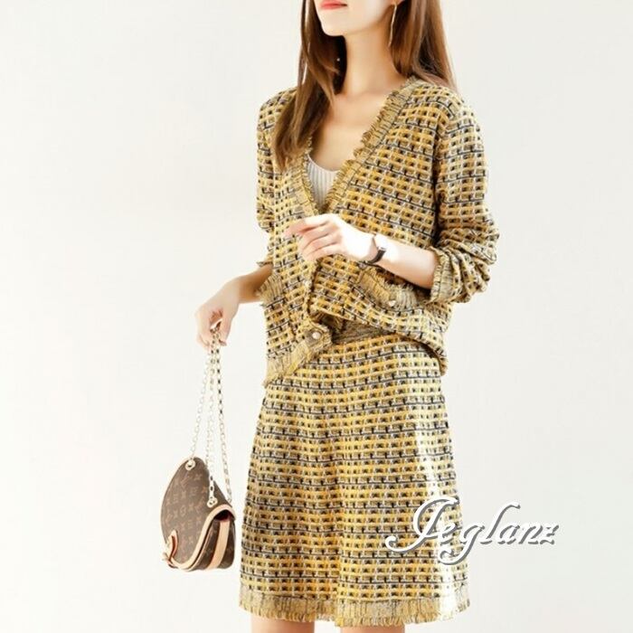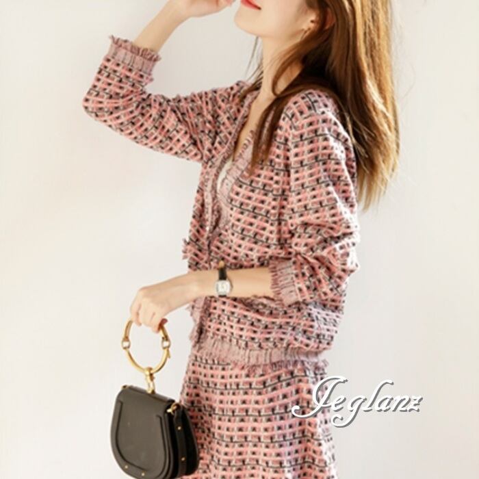 2色 セットアップ 2点 ニット カーデ フリンジ Aライン スカート( MA769)λ