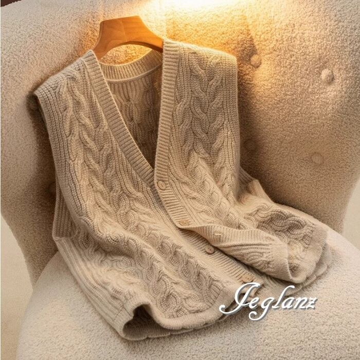 2色 ケーブルニット ベスト ジレ ボタン レイヤード カジュアル(MA777)σ,ς*