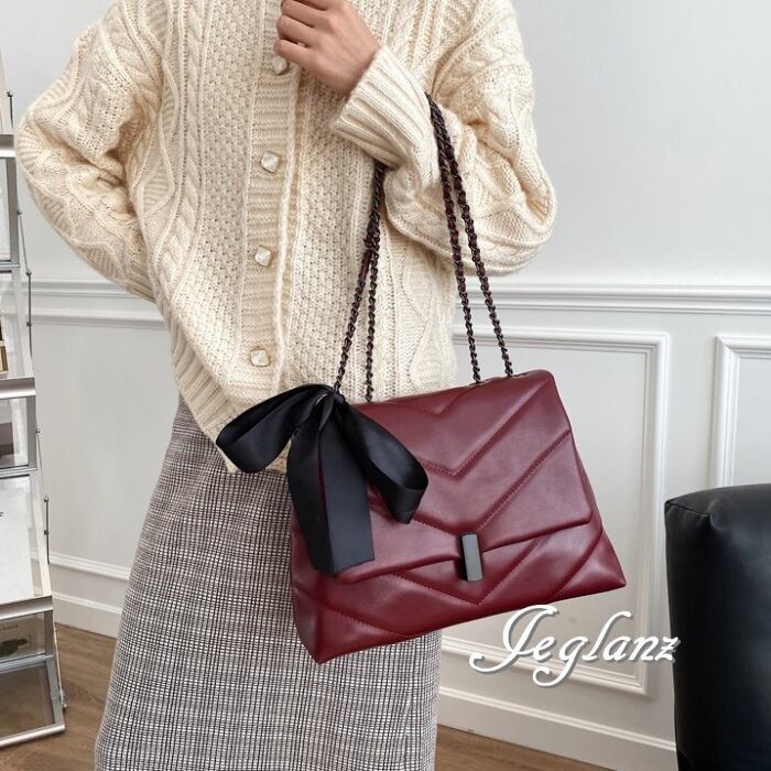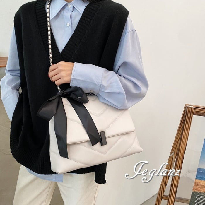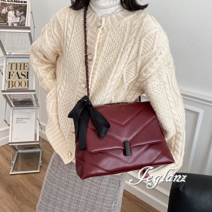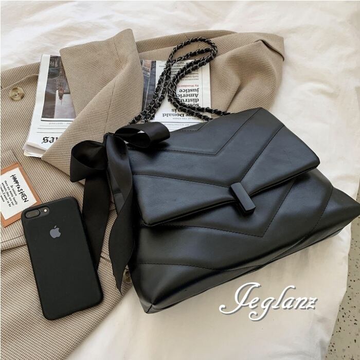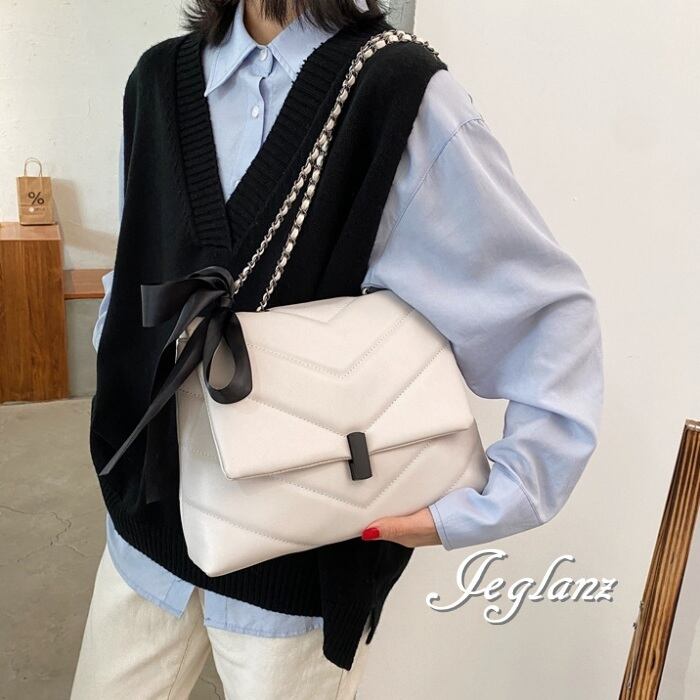 3色 スクエア ショルダーバッグ リボン付き チェーンベルト 2way(MA778)ξ