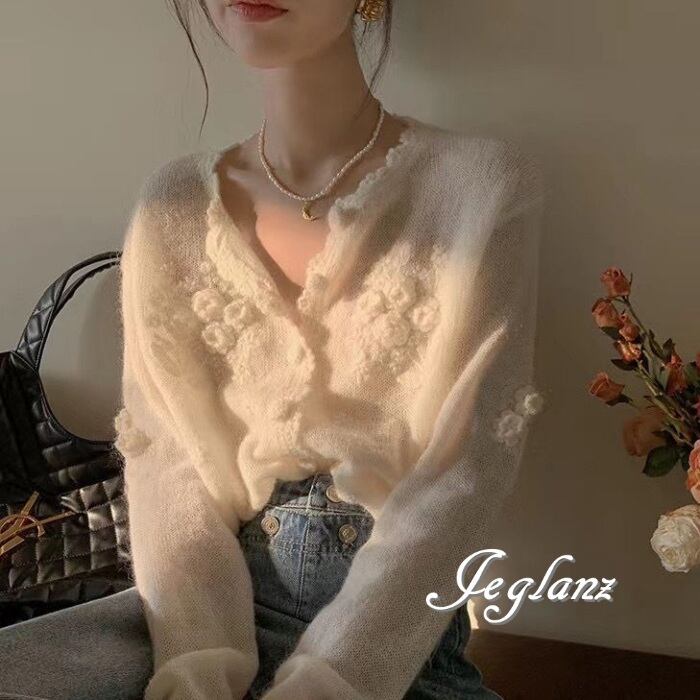 花モチーフが上品&インパクトなニットカーディガン