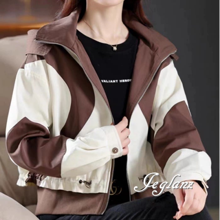 バイカラー ブルゾン ジャケット 羽織り フーディ ジップアップ(MA789)τ