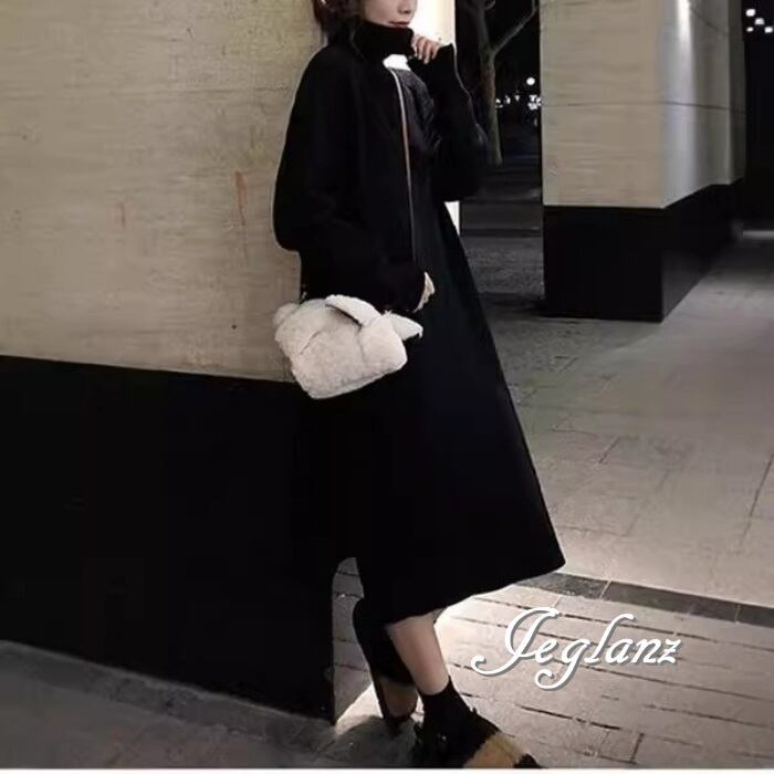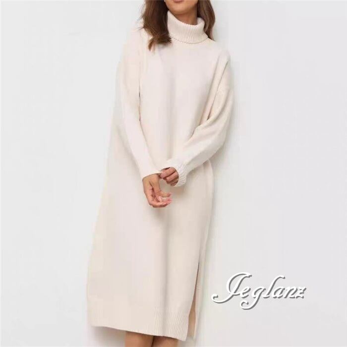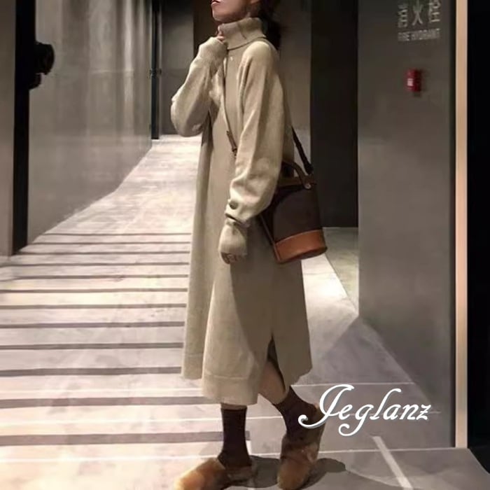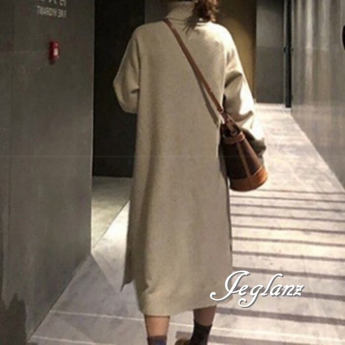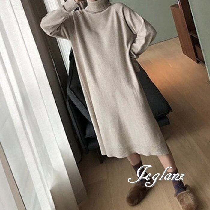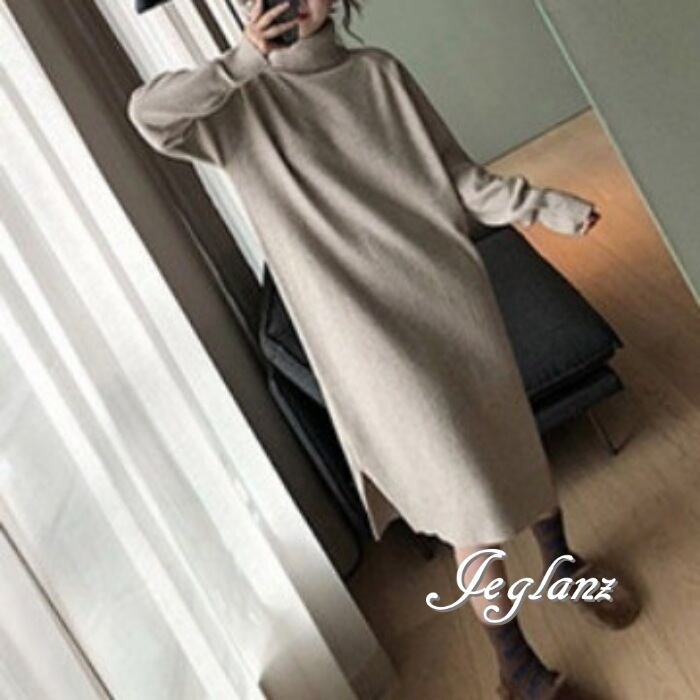 上品 ニット ワンピース スリット モックネック シンプル派 4色(MA817)γ