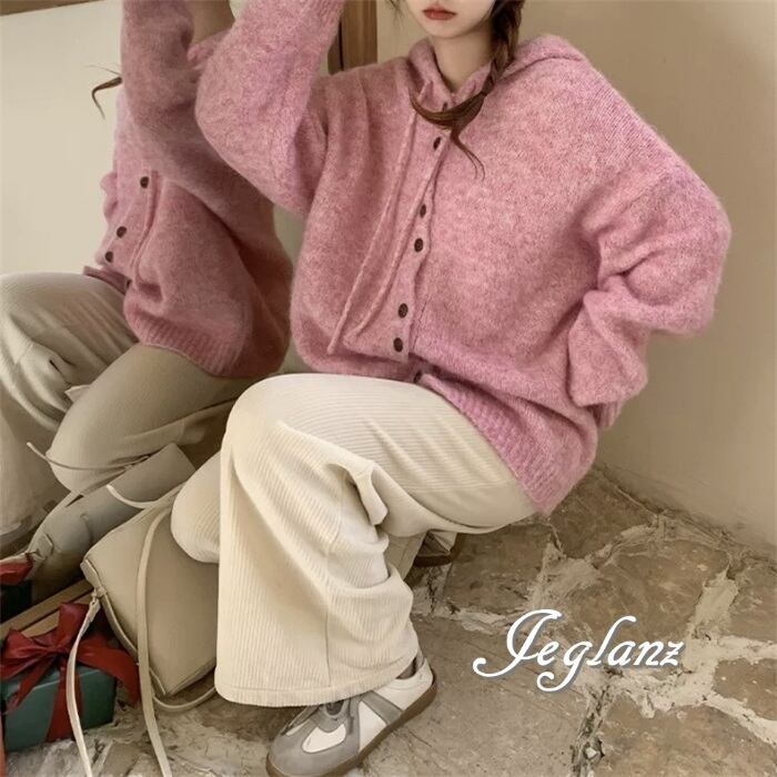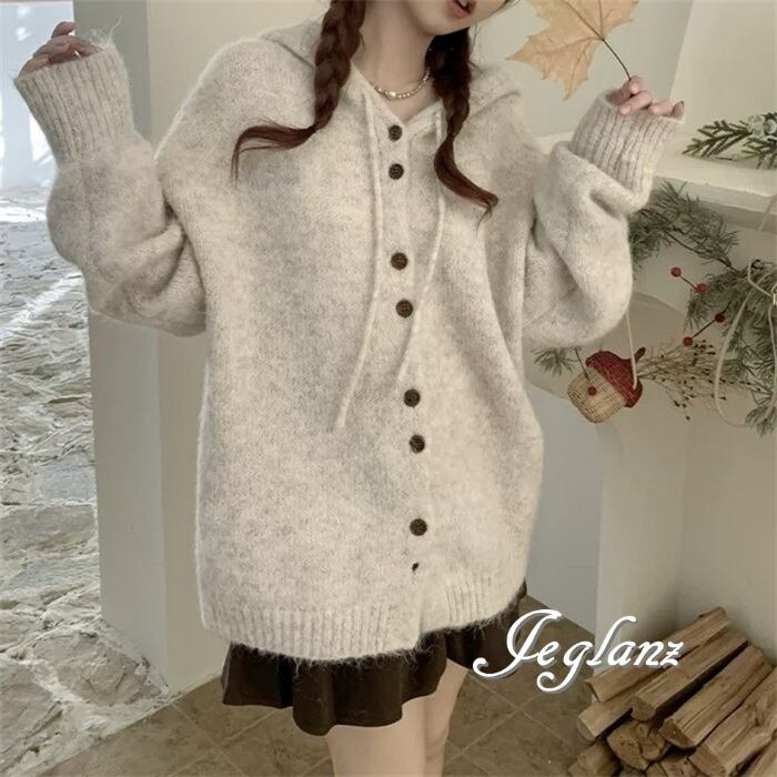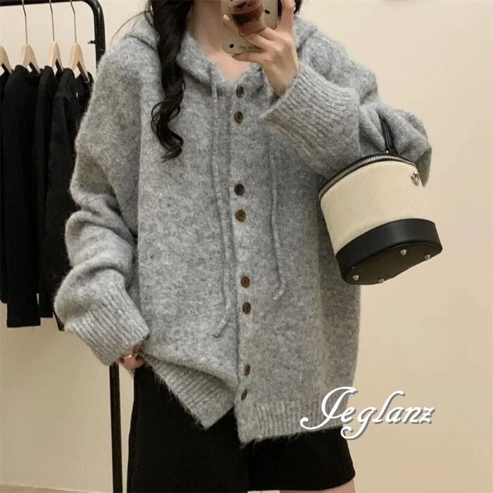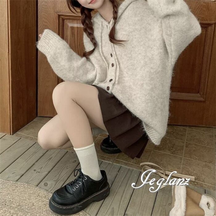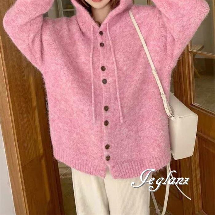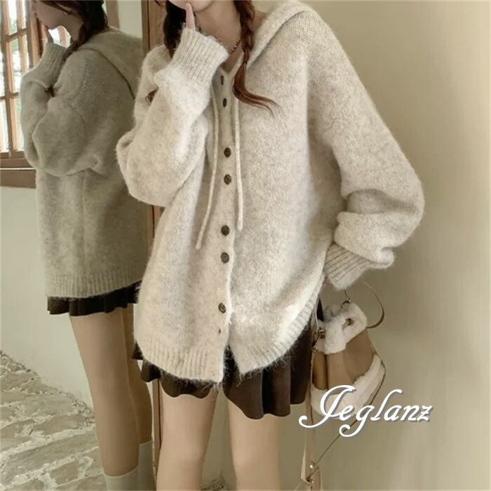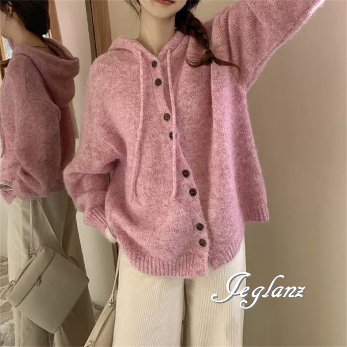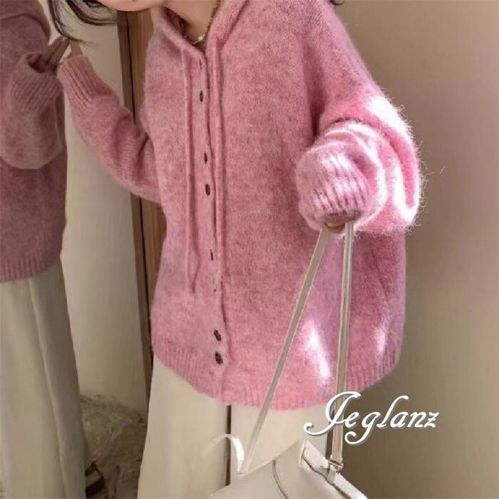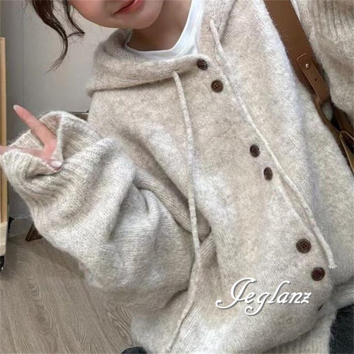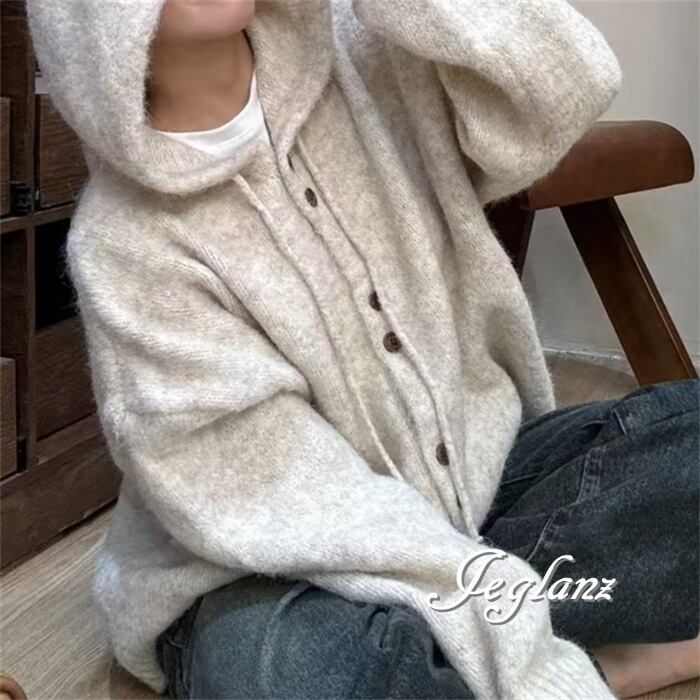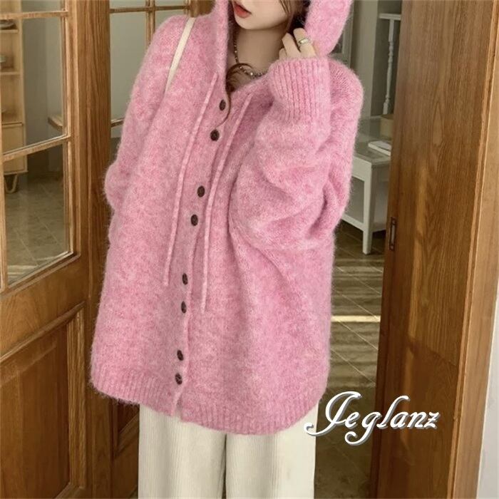 4色 ニット カーディガン セーター フード付き 羽織り カジュアル (MA839)σ,ς*