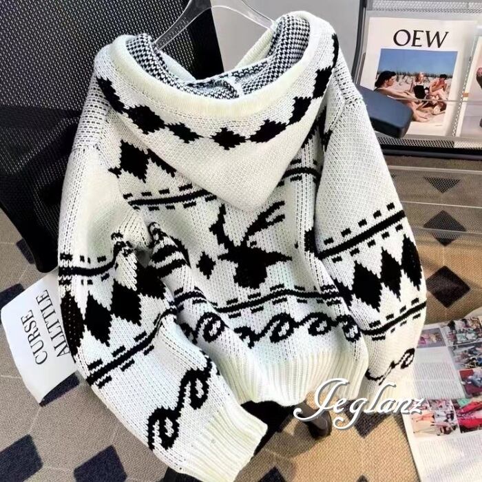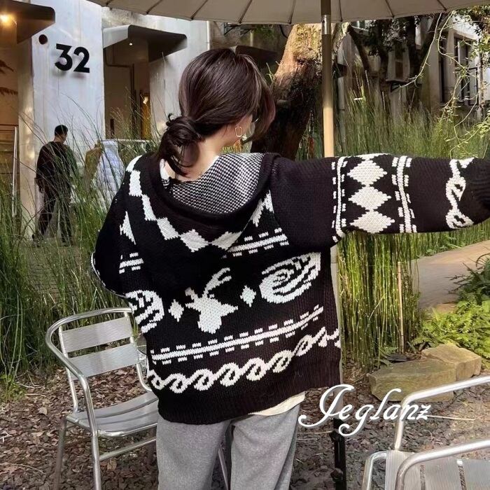 2色 ニット パーカー フーディ フード付き ジオメトリック ジップ (MA840)σ,ς*