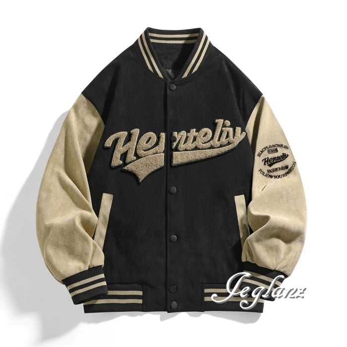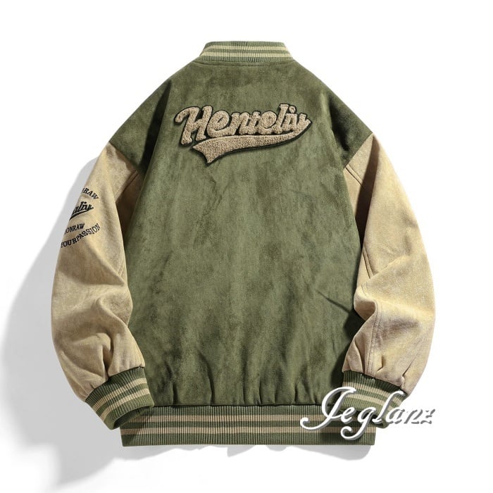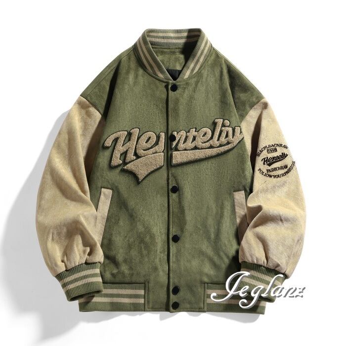 2色 スタジャン ジャケット スウェード調 ロゴ ユニセックス (MA857)τ