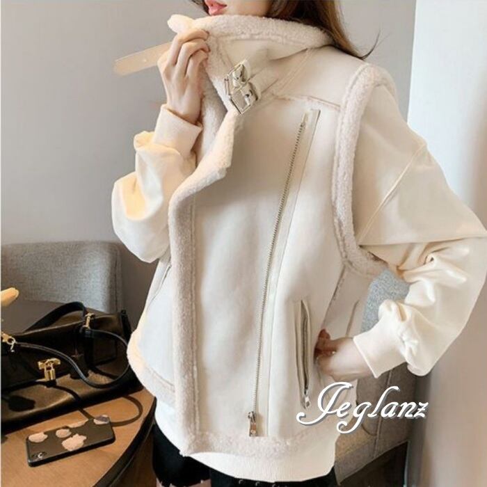 4色 ムスタン ジレ ベスト スタッズベルト 襟2way ボア フェイク(MA879)τ