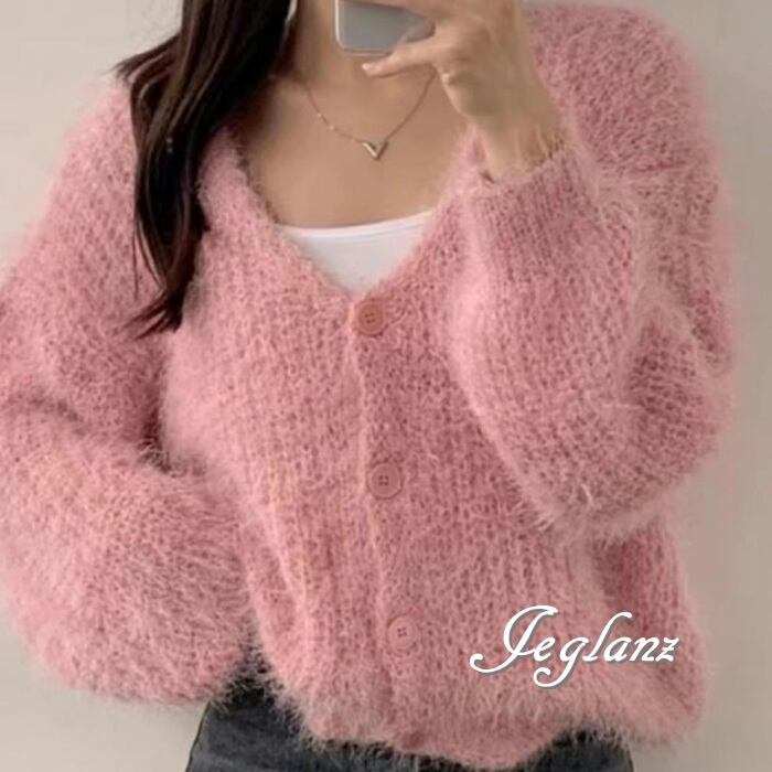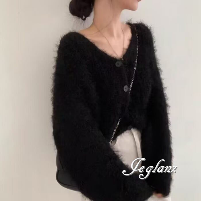 4色 モヘヤ ニット セーター カーディガン Vネック カジュアル派(MA887)σ,ς*