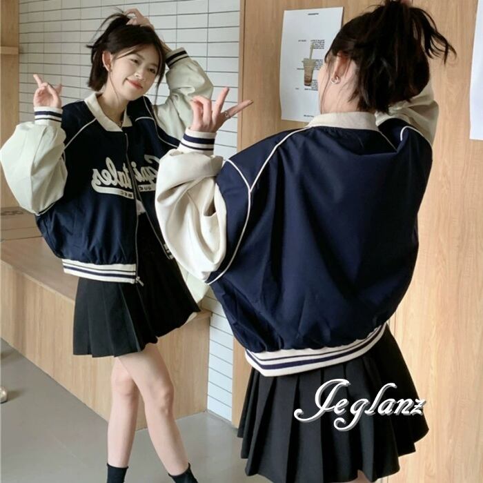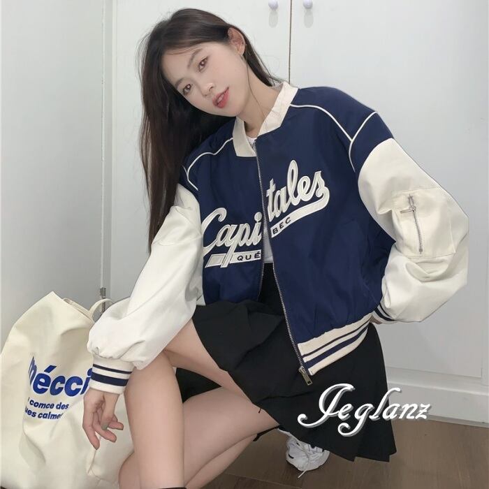 2色 スタジャン ジャケット ジップ ロゴ 配色 MA-1 ユニセックス(MA896)τ