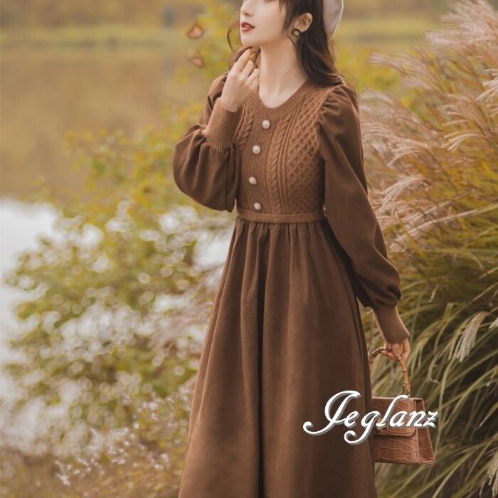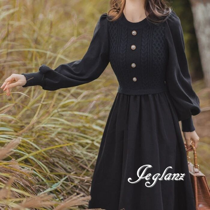 上品 ニット ワンピース ドレス パール Aライン きれいめ シンプル(MA898)γ