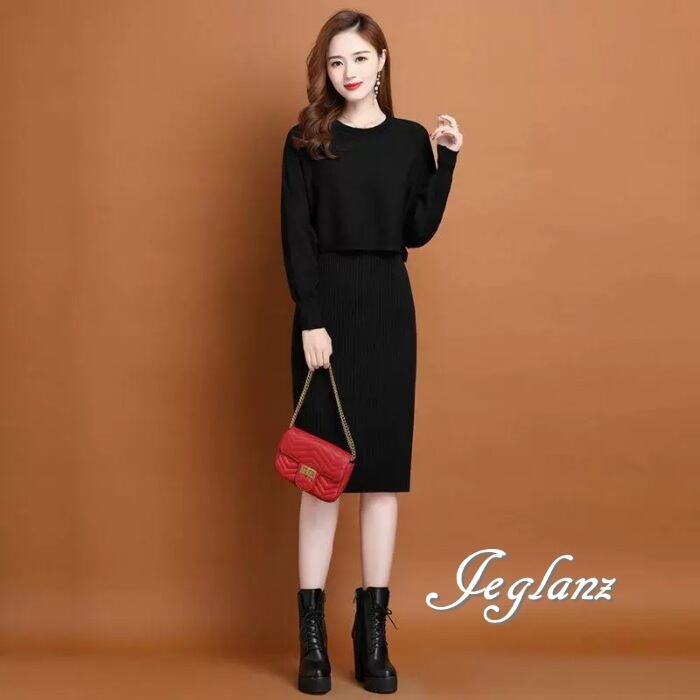 セットアップ 2点 ニット プルオーバー 袖なし ワンピース 4色(MA900)λ