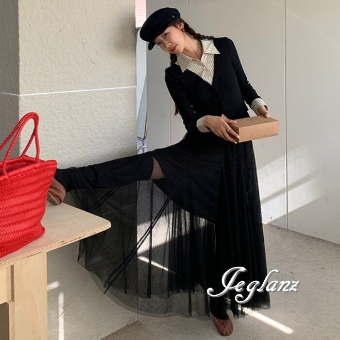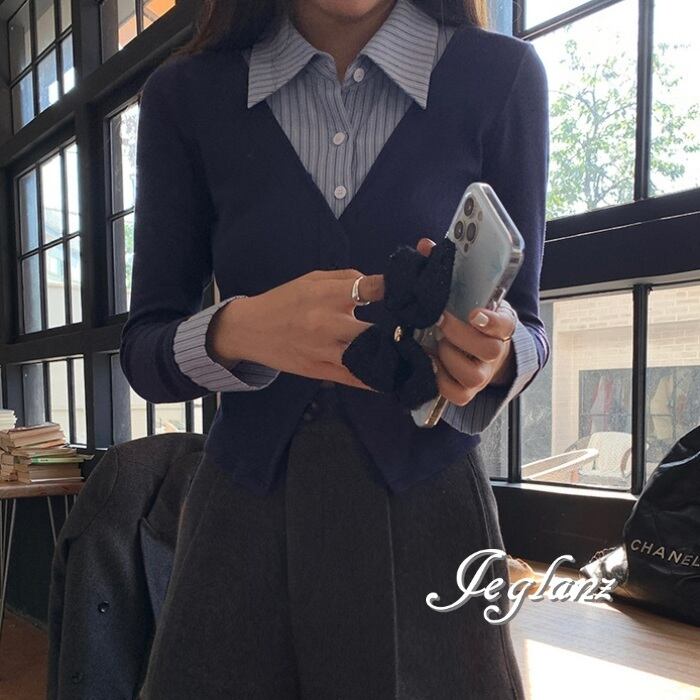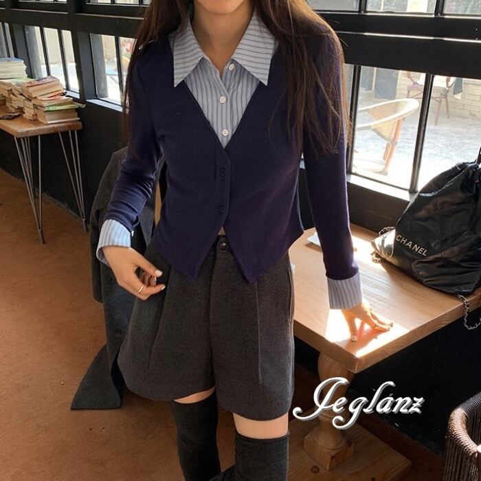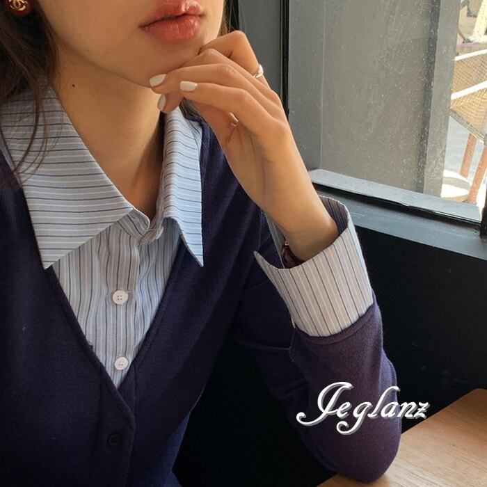 2色 フェイク バイカラー トップス 異素材 きれいめ カジュアル派 (MA926)σ,ς*