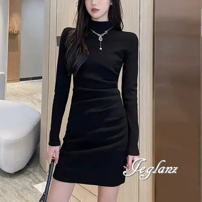 ワンピース ハイネック タイト スリム カジュアル ミニスカ(MA927)γ