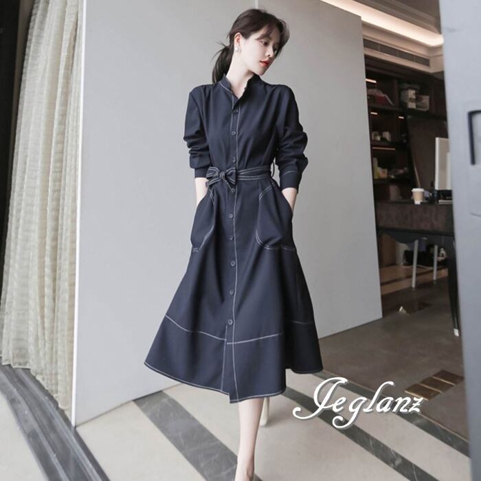 2色 ワンピース ドレス 共ベルト きれいめ カジュアル派 (MA936)γα