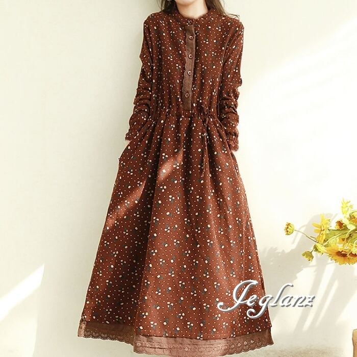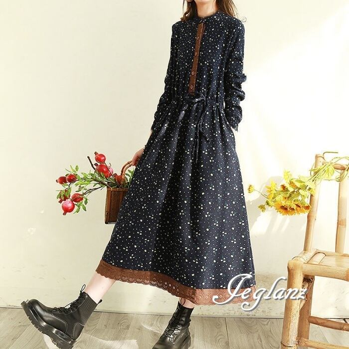 3色 小花柄 ワンピース 異素材 レース きれいめ カジュアル派 ♪(MA938)γ