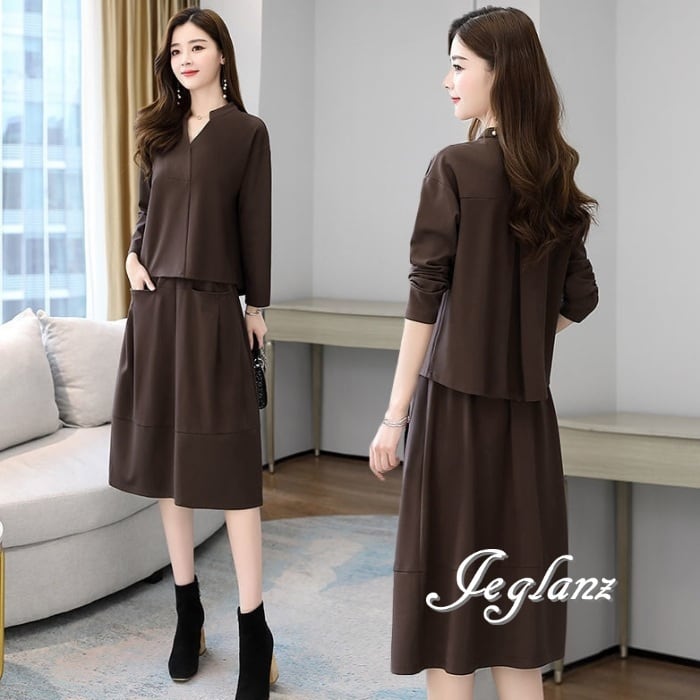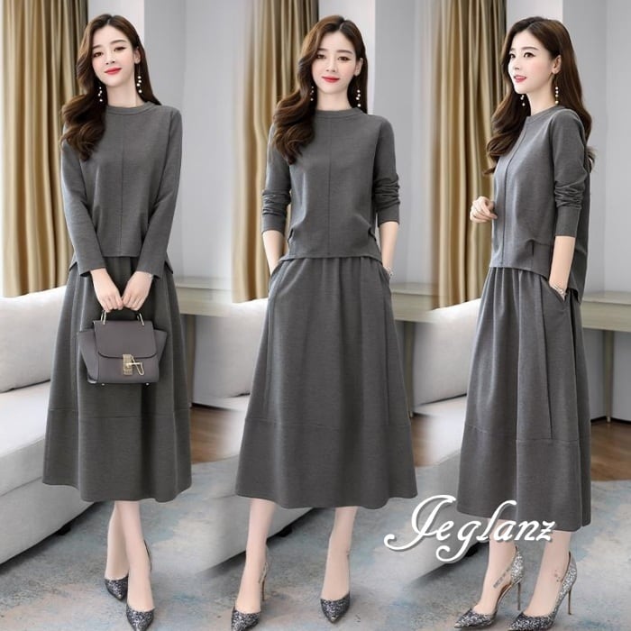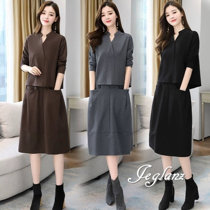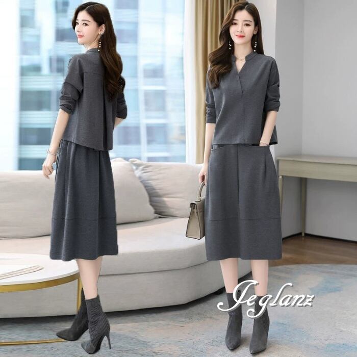 3色 セットアップ 2点 トップス スカート シンプル派 (MA939)λ