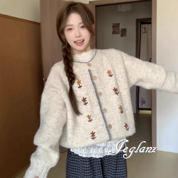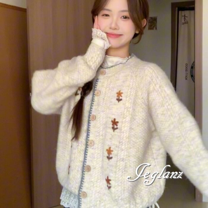 ニット カーディガン セーター フラワー刺繍 カジュアル レトロ感(MA958)σ,ς*