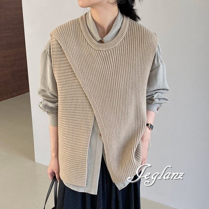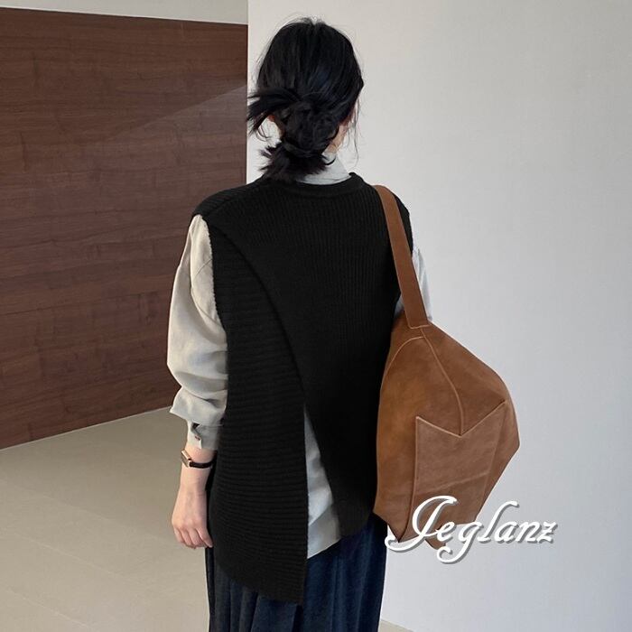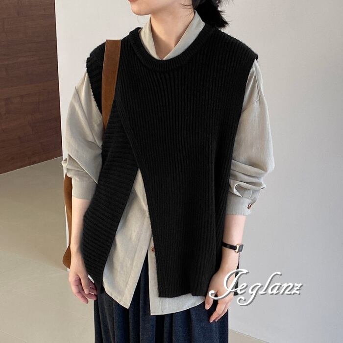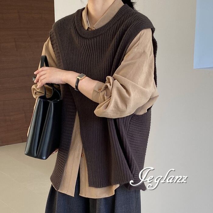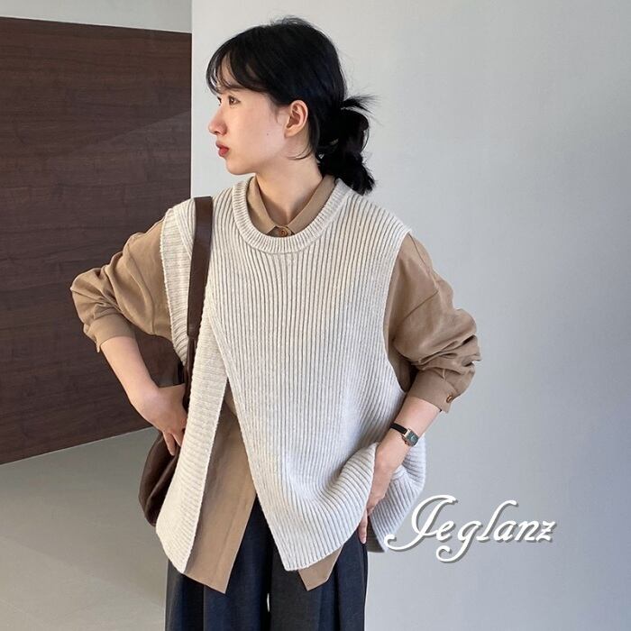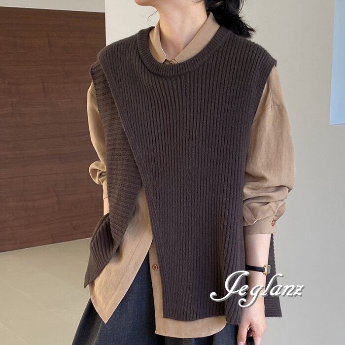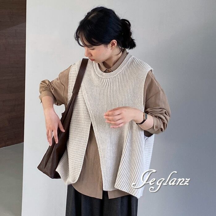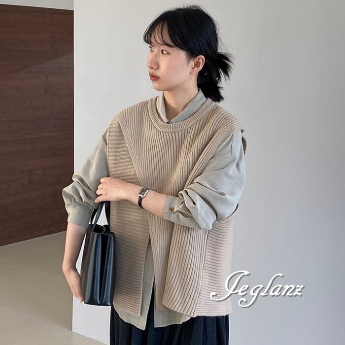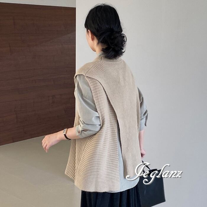 4色 ニット ジレ ベスト ノーカラースリット バックシャン (MA977)τ