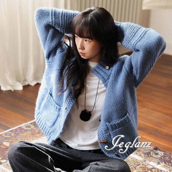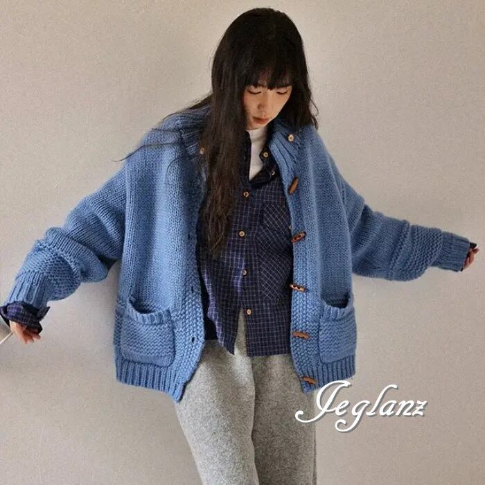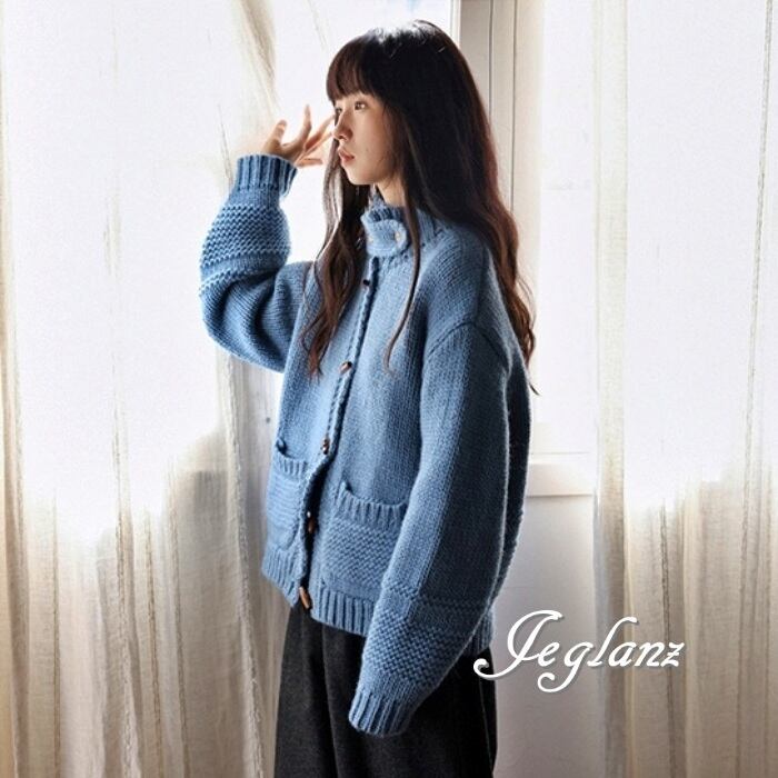 2色 ニット カーディガン ベルト付き トグルーボタン 襟 2way (MA979)σ,ς*